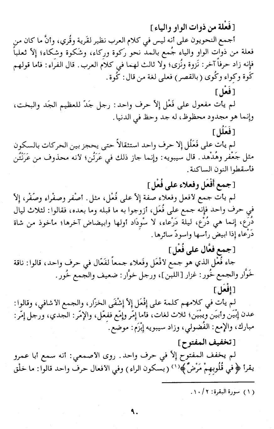 روى الأصمعي: أنه سمع أبا عمرو يقرأ {في قُلُوبِهِمْ مَرْضٌ} (بسكون الراء) وفي الأفعال حرف واحد قالوا: ماخلق