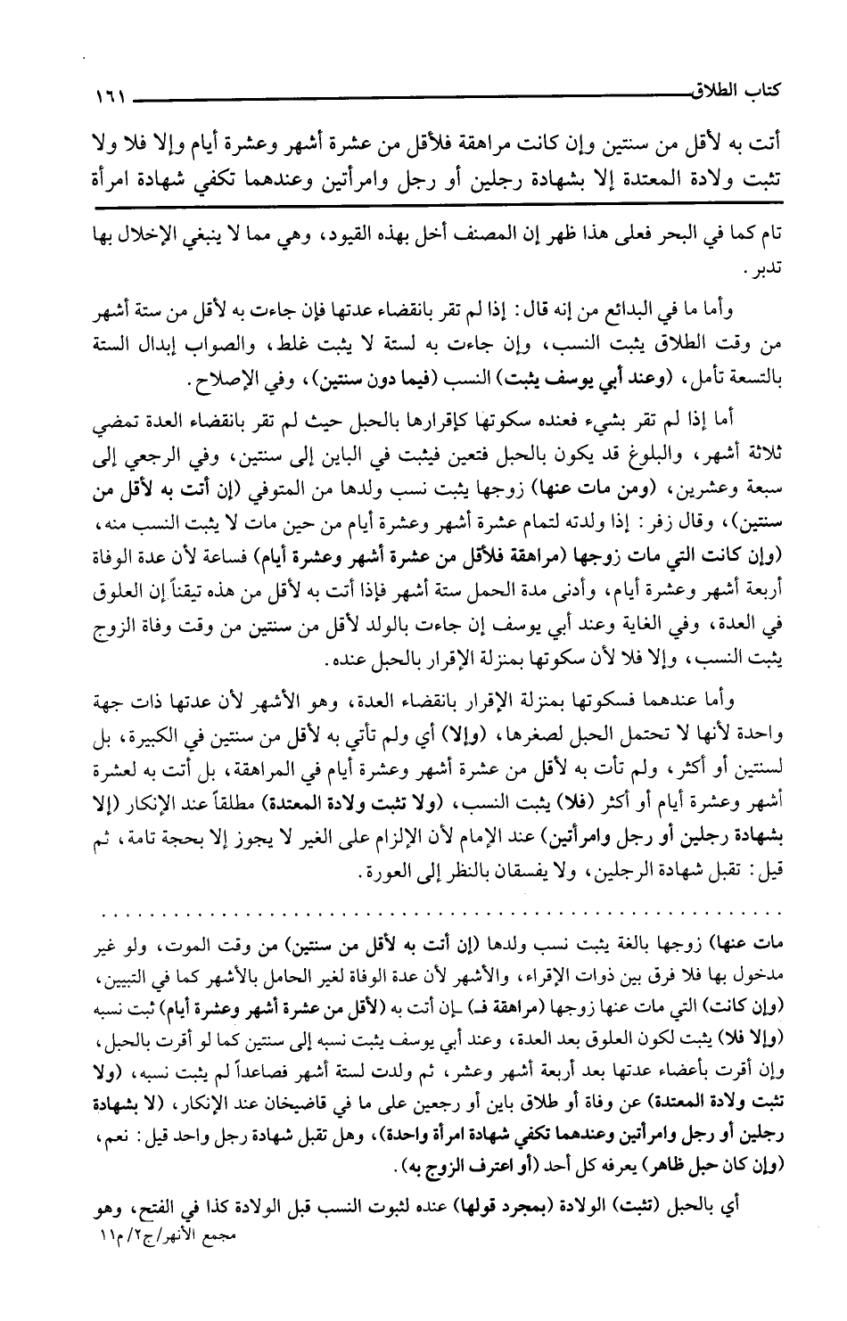 وفي الغاية وعند أبي يوسف إن جاءت بالولد لأقل من سنتين من وقت وفاة الزوج يثبت النسب وإلا فلا لأن سكوتها بمنزلة الإقرار بالحبل عنده وأما عندهما فسكوتها بمنزلة الإقرار بانقضاء العدة وهو الأشهر لأن عدتها ذات جهة واحدة لأنها لا تحتمل الحبل لصغرها وإلا أي ولم تأت به لأقل من سنتين في الكبيرة بل لسنتين أو أكثر ولم تأت به لأقل من عشرة أشهر وعشرة أيام في المراهقة بل أتت به لعشرة أشهر وعشرة أيام أو أكثر فلا يثبت النسب ولا تثبت ولادة المعتدة مطلقا عند الإنكار إلا بشهادة رجلين أو رجل وامرأتين عند الإمام لأن الإلزام على الغير ولا يجوز إلا بحجة تامة ثم قيل تقبل شهادة الرجلين ولا يفسقان بالنظر إلى العورة