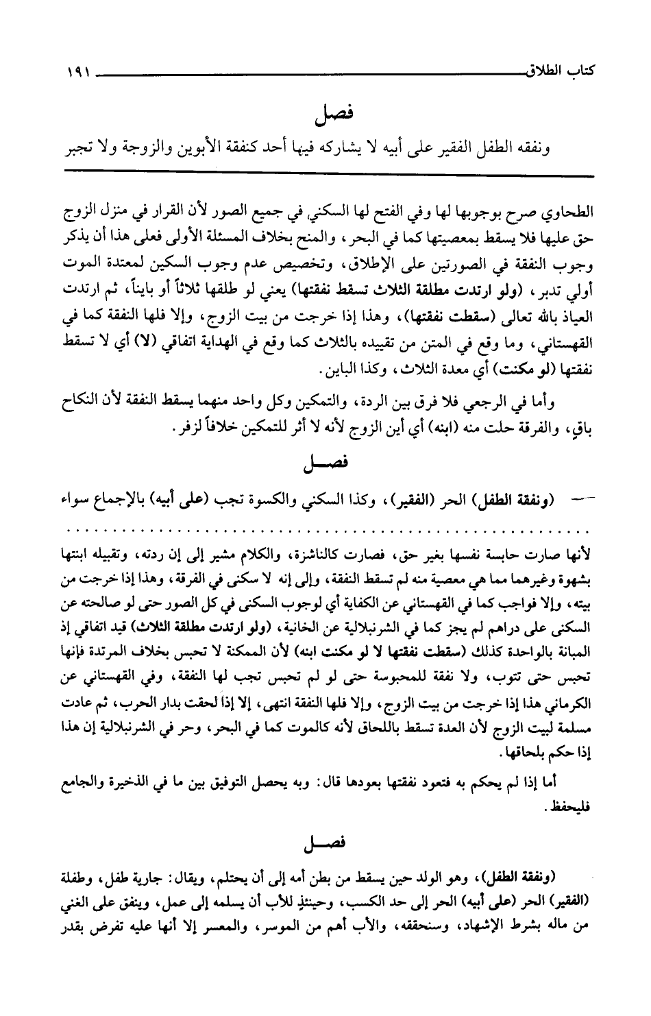 فصل ونفقة الطفل الحر الفقير وكذا السكنى والكسوة تجب على أبيه بالإجماع سواء