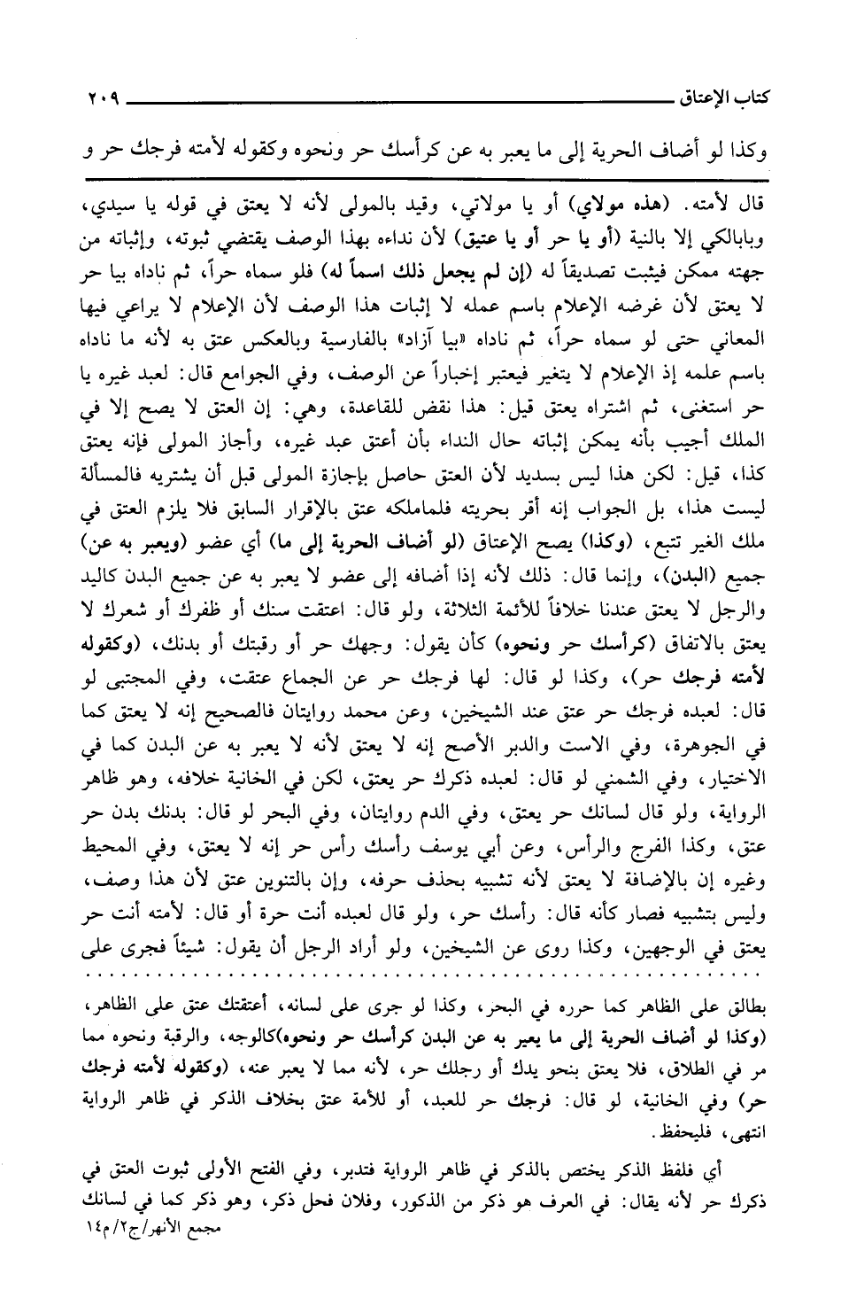 وفي المجتبى لو قال لعبده فرجك حر عتق عند الشيخين وعن محمد روايتان فالصحيح أنه لا يعتق كما في الجوهرة وفي الاست والدبر الأصح أنه لا يعتق لأنه لا يعبر به عن البدن كما في الاختيار