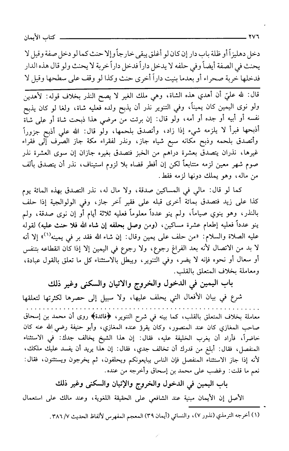 باب اليمين في الدخول والخروج والإتيان والسكنى وغير ذلك