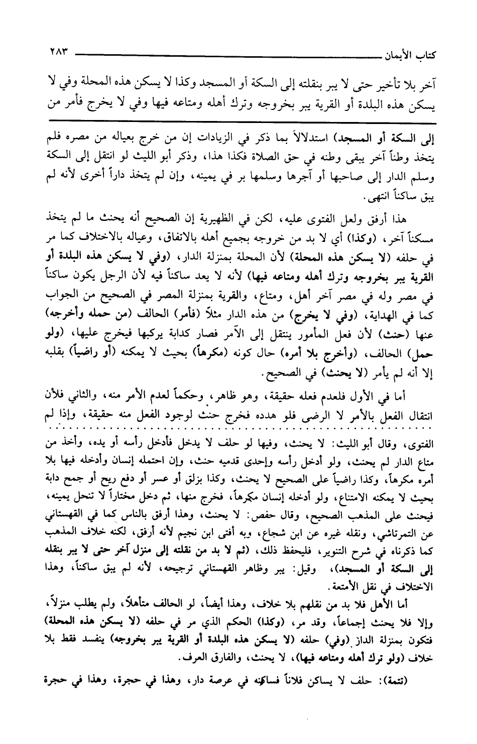 هذا أرفق ولعل الفتوى عليه لكن في الظهيرية أن الصحيح أنه يحنث ما لم يتخذ مسكنا آخر