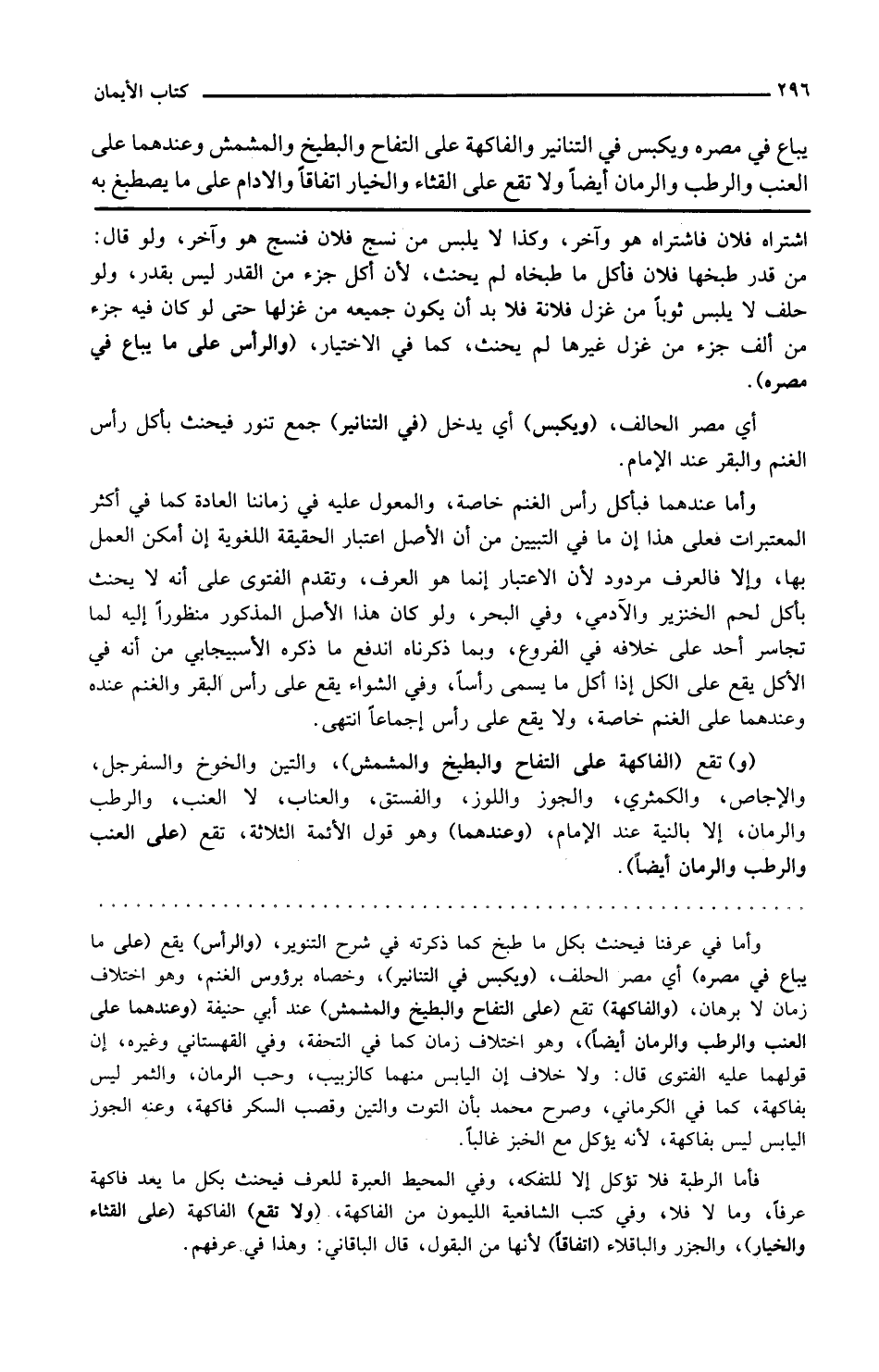 اشتراه فلان فاشتراه هو وآخر وكذا لا يلبس من نسج فلان فنسج هو وآخر ولو قال من قدر طبخها فلان فأكل ما طبخاه لم يحنث لأن أكل جزء من القدر ليس بقدر ولو حلف لا يلبس ثوبا من غزل فلانة فلا بد أن يكون جميعه من غزلها حتى لو كان فيه جزء من ألف جزء من غزل غيرها لم يحنث كما في الاختيار والرأس على ما يباع في مصره أي مصر الحالف ويكبس أي يدخل في التنانير جمع تنور فيحنث بأكل رأس الغنم والبقر عند الإمام وأما عندهما فبأكل رأس الغنم خاصة والمعول عليه في زماننا العادة كما في أكثر المعتبرات فعلى هذا أن ما في التبيين من أن الأصل اعتبار الحقيقة اللغوية إن أمكن العمل بها وإلا فالعرف مردود لأن الاعتبار إنما هو العرف وتقدم الفتوى على أنه لا يحنث بأكل لحم الخنزير والآدمي