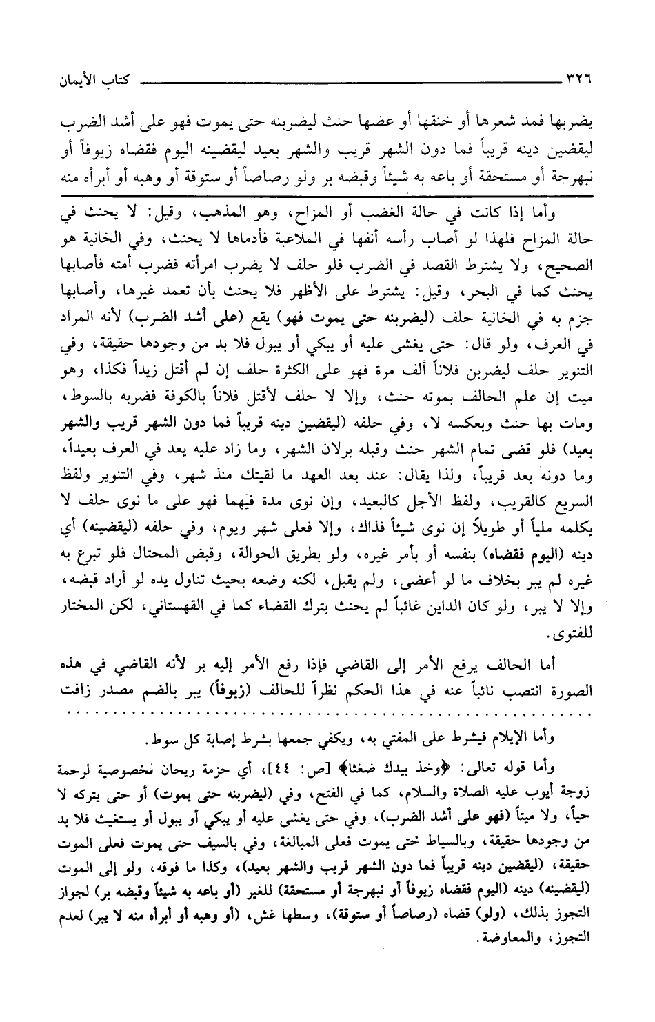 وفي التنوير ولفظ السريع كالقريب ولفظ الأجل كالبعيد وإن نوى مدة فيهما فهو على ما نوى حلف لا يكلمه مليا أو طويلا إن نوى شيئا فذاك وإلا فعلى شهر ويوم وفي حلفه ليقضينه أي دينه اليوم فقضاه بنفسه أو بأمر غيره ولو بطريق الحوالة وقبض المحتال فلو تبرع به غيره لم يبر بخلاف ما لو أعطي ولم يقبل لكنه وضعه بحيث تناول يده لو أراد قبضه وإلا لا يبر ولو كان الدائن غائبا لم يحنث بترك القضاء كما في القهستاني لكن المختار للفتوى أما الحالف يرفع الأمر إلى القاضي فإذا رفع الأمر إليه بر لأن القاضي في هذه الصورة انتصب نائبا عنه في هذا الحكم نظرا للحالف زيوفا يبر بالضم مصدر زافت