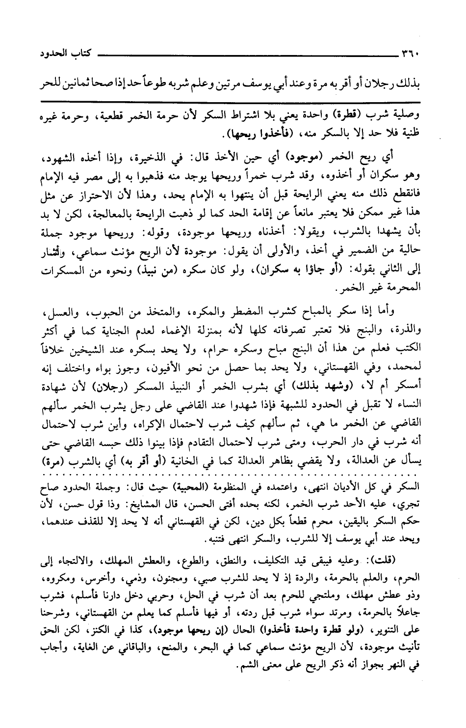 وصلية شرب قطرة واحدة يعني بلا اشتراط السكر لأن حرمة الخمر قطعية وحرمة غيره ظنية فلا حد إلا بالسكر منه فأخذوا ريحها أي ريح الخمر موجود أي حين الأخذ قال في الذخيرة وإذا أخذه الشهود وهو سكران أو أخذوه وقد شرب خمرا وريحها يوجد منه فذهبوا به إلى مصر فيه الإمام فانقطع ذلك منه يعني الرائحة قبل أن ينتهوا به إلى الإمام يحد وهذا لأن الاحتراز عن مثل هذا غير ممكن فلا يعتبر مانعا عن إقامة الحد كما لو ذهبت الرائحة بالمعالجة لكن لا بد بأن يشهدا بالشرب ويقولا أخذناه وريحها موجودة وقوله وريحها موجود جملة حالية من الضمير في أخذ والأولى أن يقول موجودة لأن الريح مؤنث سماعي وأشار إلى الثاني بقوله أو جاءوا به سكران ولو كان سكره من نبيذ ونحوه من المسكرات المحرمة غير الخمر وأما إذا سكر بالمباح كشرب المضطر والمكره والمتخذ من الحبوب والعسل والذرة والبنج فلا تعتبر تصرفاته كلها لأنه بمنزلة الإغماء لعدم الجناية كما في أكثر الكتب فعلم من هذا أن البنج مباح وسكره حرام ولا يحد بسكره عند الشيخين خلافا لمحمد