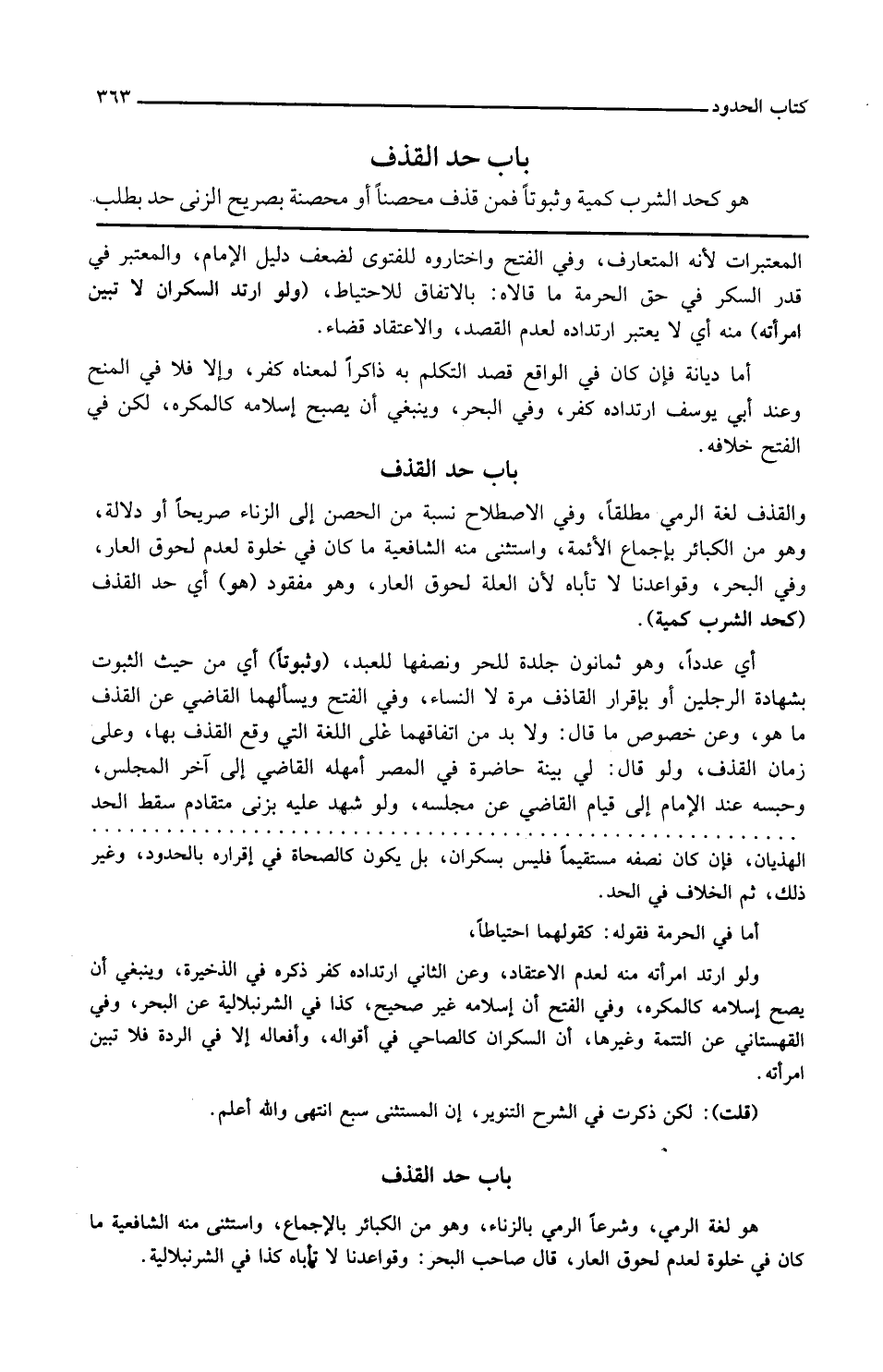 والقذف لغة الرمي مطلقا وفي الاصطلاح نسبة من أحصن إلى الزناء صريحا أو دلالة وهو من الكبائر بإجماع الأئمة واستثنى منه الشافعية ما كان في خلوة لعدم لحوق العار