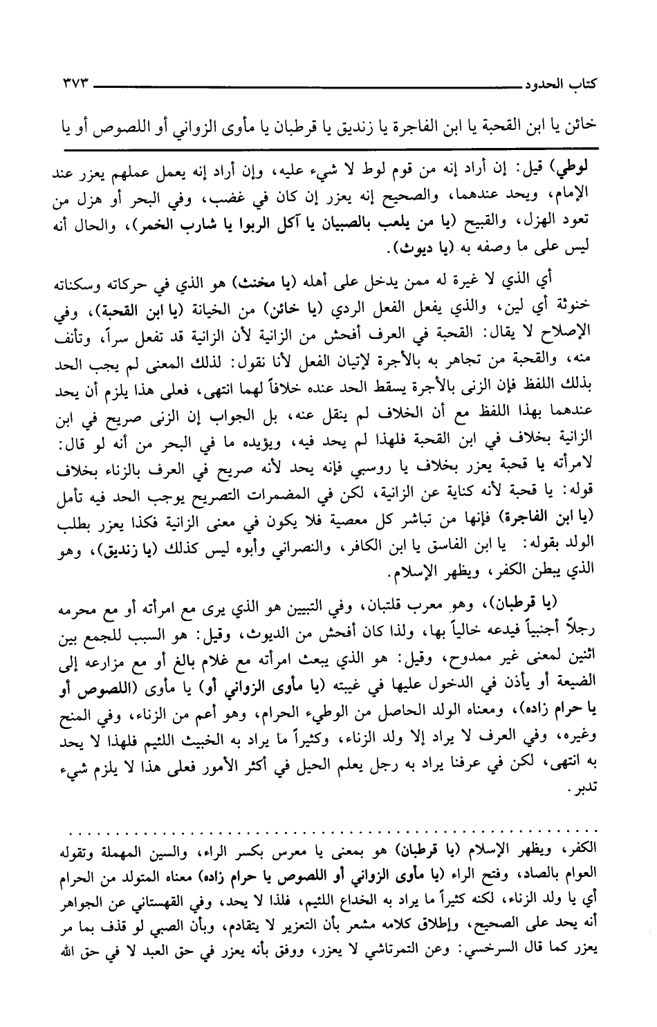 لوطي قيل إن أراد أنه من قوم لوط لا شيء عليه وإن أراد أنه يعمل عملهم يعزر عند الإمام ويحد عندهما والصحيح أنه يعزر إن كان في غضب وفي البحر أو هزل من تعود الهزل والقبيح يا من يلعب بالصبيان يا آكل الربا يا شارب الخمر والحال أنه ليس على ما وصفه به يا ديوث أي الذي لا غيرة له ممن يدخل على أهله يا مخنث هو الذي في حركاته وسكناته خنوثة أي لين والذي يفعل الفعل الردي يا خائن من الخيانة يا ابن القحبة