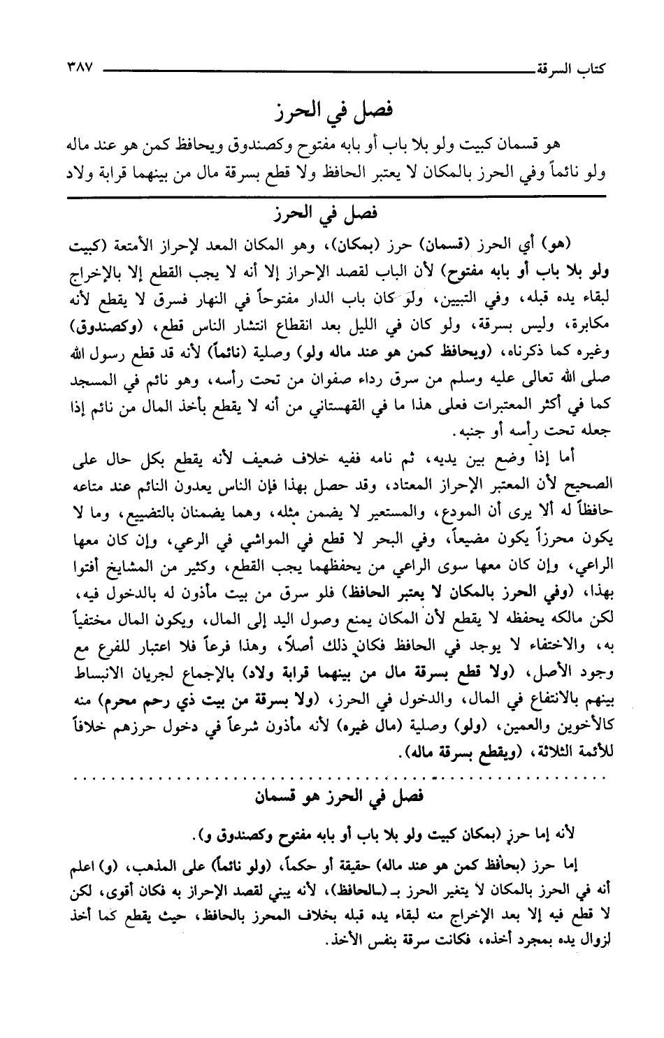 فصل في الحرز