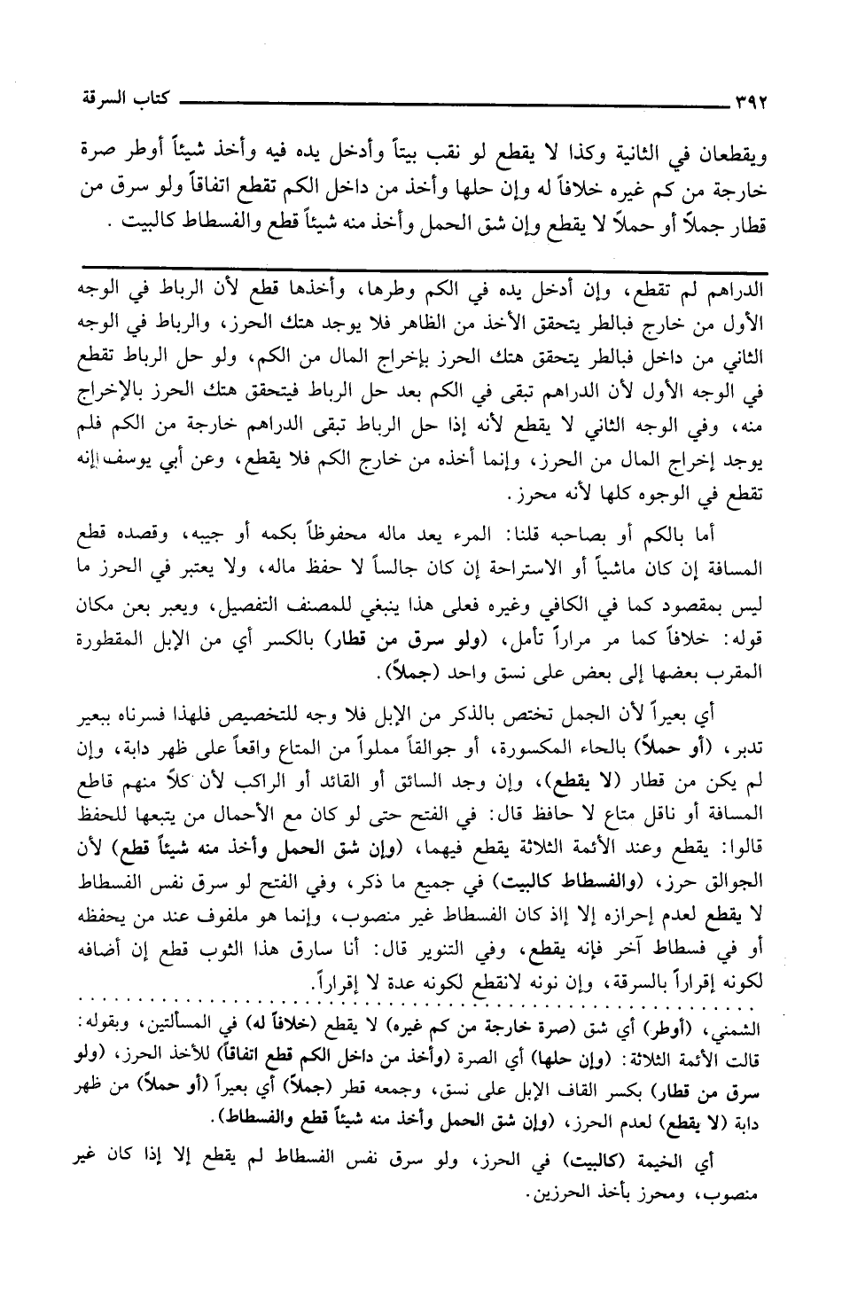 وفي الفتح لو سرق نفس الفسطاط لا يقطع لعدم إحرازه إلا إذا كان الفسطاط غير منصوب وإنما هو ملفوف عند من يحفظه أو في فسطاط آخر فإنه يقطع