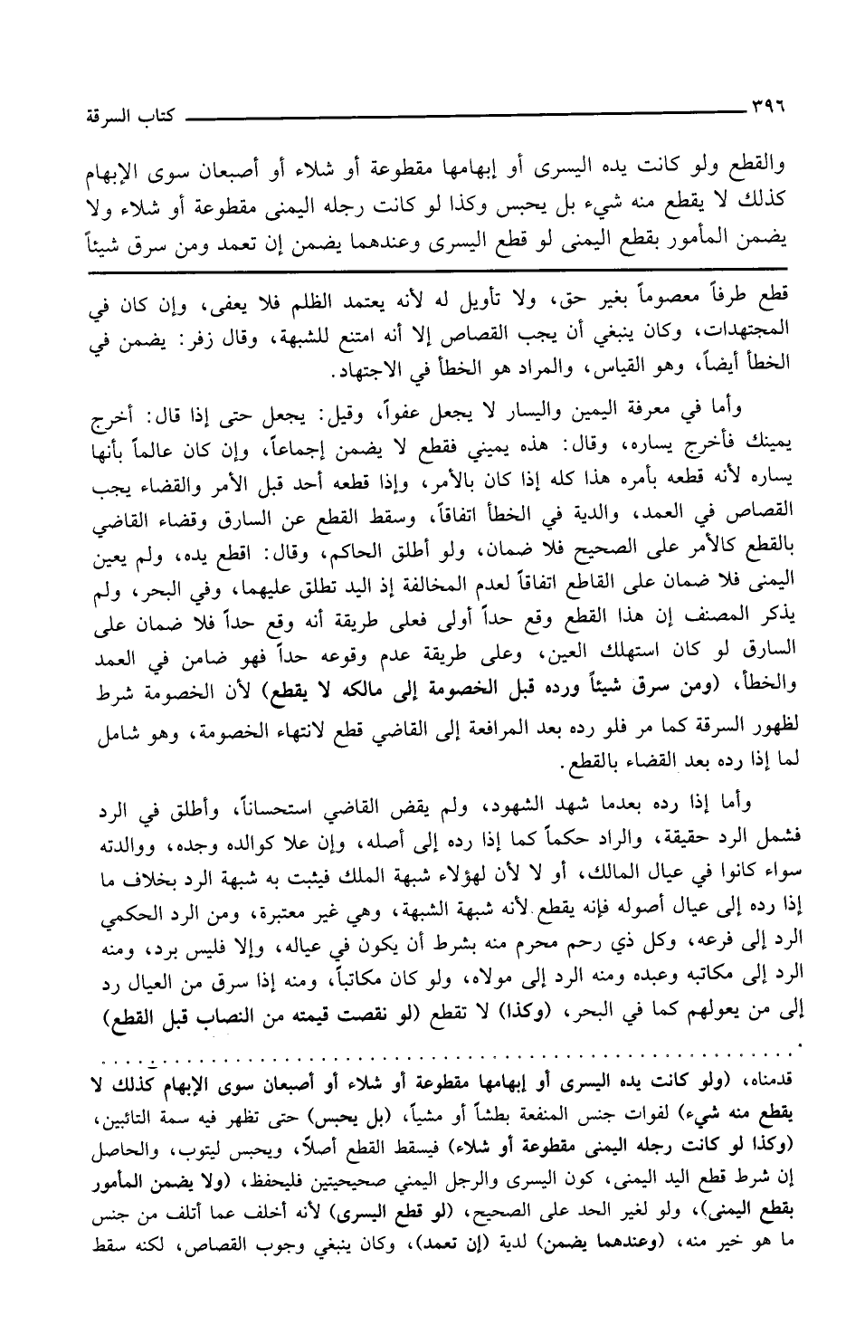 قطع طرفا معصوما بغير حق ولا تأويل له لأنه يتعمد الظلم فلا يعفى وإن كان في المجتهدات وكان ينبغي أن يجب القصاص إلا أنه امتنع للشبهة