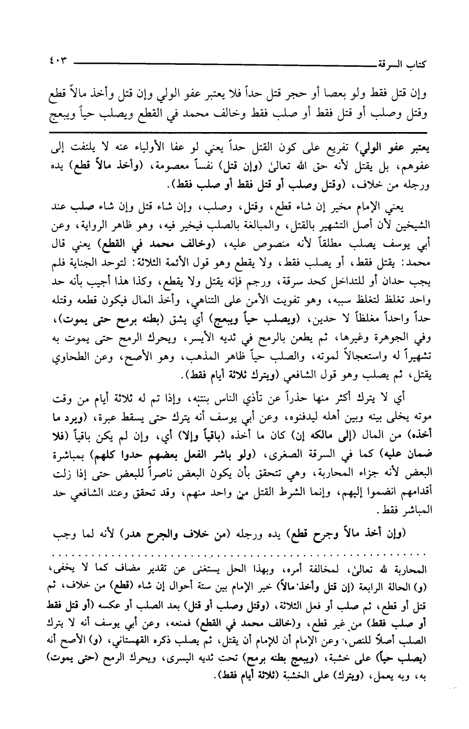 وإن قتل نفسا معصومة وأخذ مالا قطع يده ورجله من خلاف وقتل وصلب أو قتل فقط أو صلب فقط يعني الإمام مخير إن شاء قطع وقتل وصلب وإن شاء قتل وإن شاء صلب عند الشيخين لأن أصل التشهير بالقتل والمبالغة بالصلب فيخير فيه وهو ظاهر الرواية