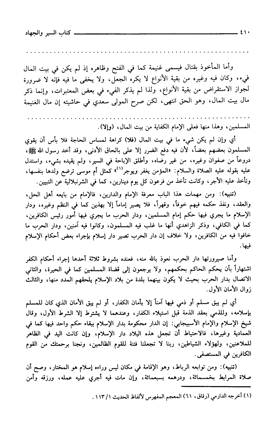 لكن صرح المولى سعدي في حاشيته إن مال الغنيمة