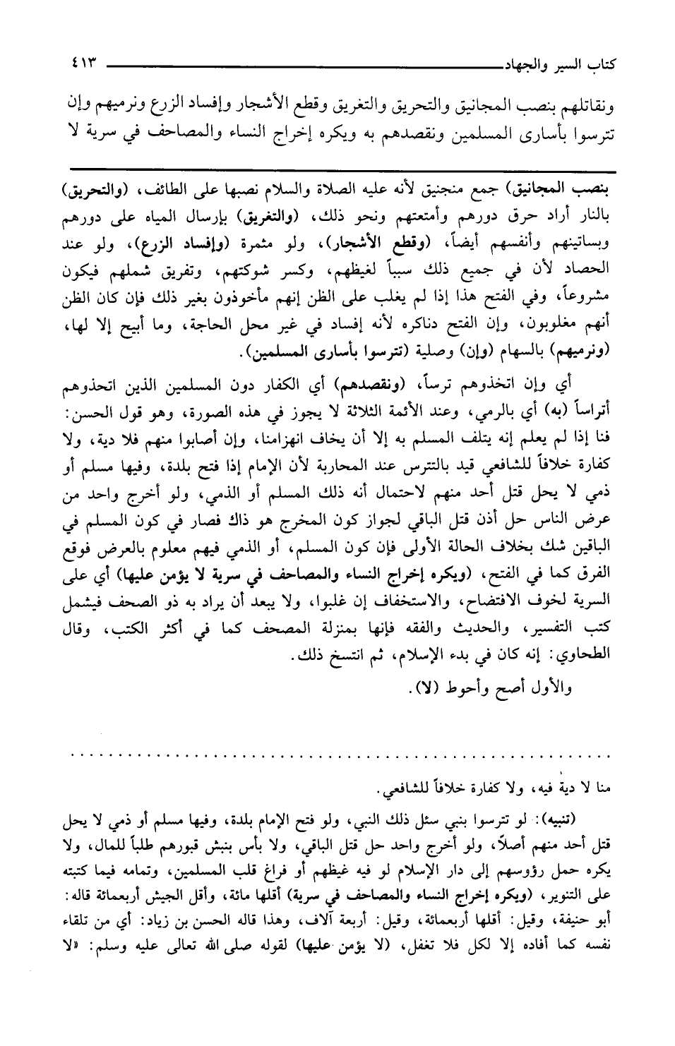 ويكره إخراج النساء والمصاحف في سرية لا يؤمن عليها أي على السرية لخوف الافتضاح والاستخفاف إن غلبوا ولا يبعد أن يراد به ذو الصحف فيشمل كتب التفسير والحديث والفقه فإنها بمنزلة المصحف كما في أكثر الكتب