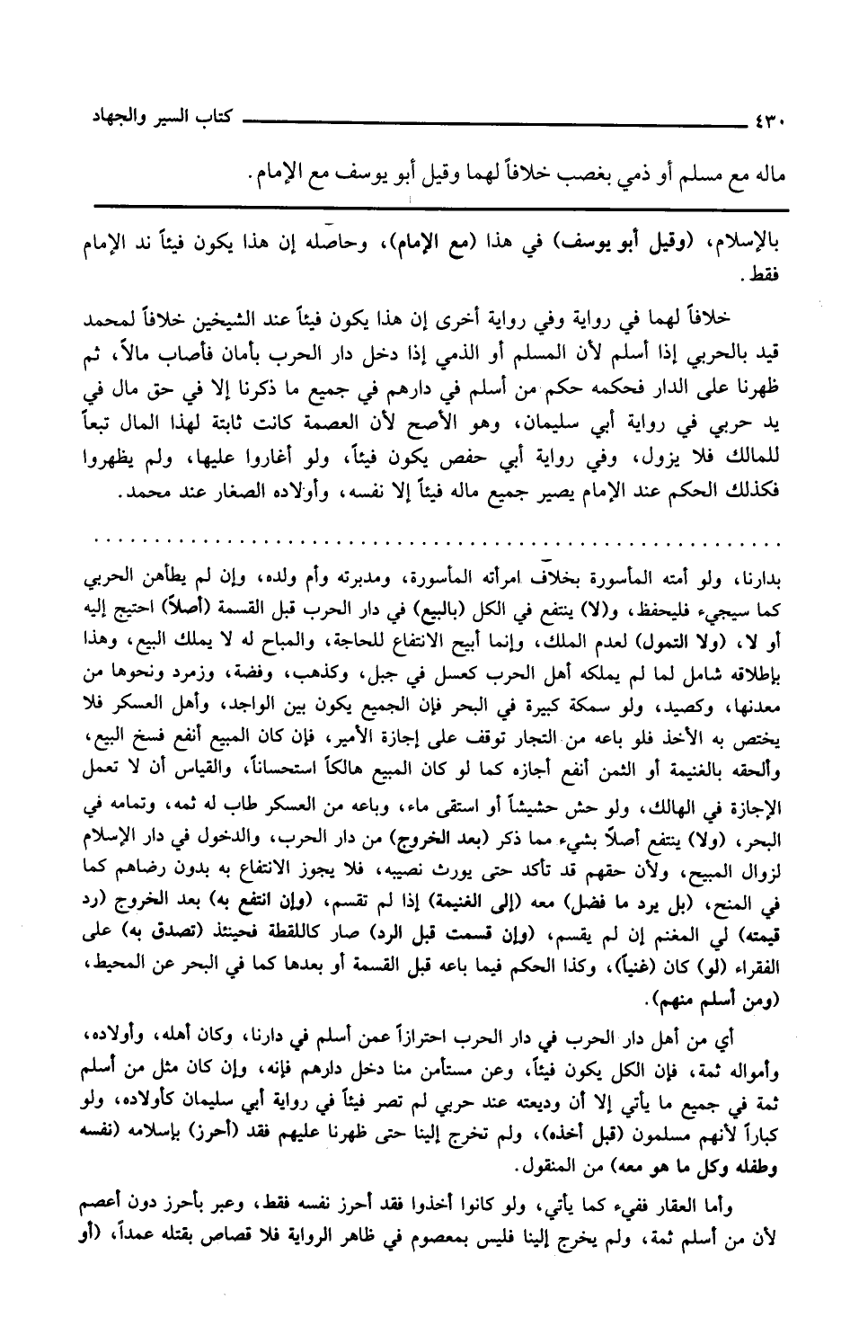 وفي رواية أخرى أن هذا يكون فيئا عند الشيخين خلافا لمحمد