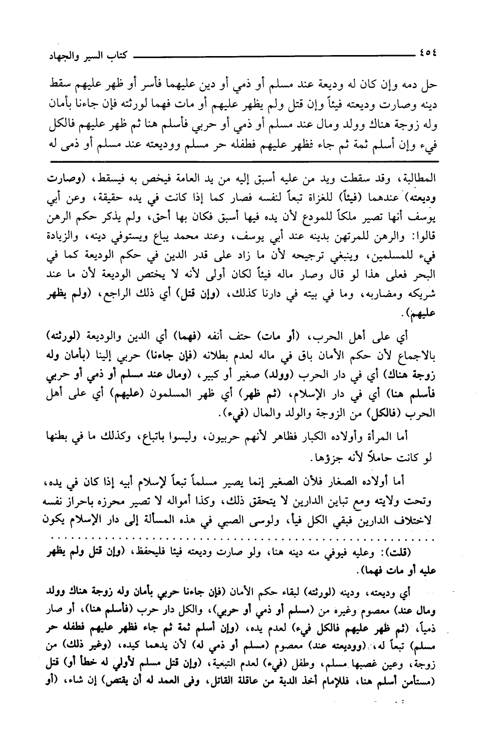 وإن قتل أي ذلك الراجع ولم يظهر عليهم أي على أهل الحرب أو مات حتف أنفه فهما أي الدين الوديعة لورثته بالإجماع لأن حكم الأمان باق في ماله لعدم بطلانه فإن جاءنا حربي إلينا بأمان وله زوجة هناك أي في دار الحرب وولد صغير أو كبير ومال عند مسلم أو ذمي أو حربي فأسلم هنا أي في دار الإسلام ثم ظهر أي ظهر المسلمون عليهم أي على أهل الحرب فالكل من الزوجة والولد والمال فيء أما المرأة وأولاده الكبار فظاهر لأنهم حربيون وليسوا بأتباع وكذلك ما في بطنها لو كانت حاملا لأنه جزؤها أما أولاده الصغار فلأن الصغير إنما يصير