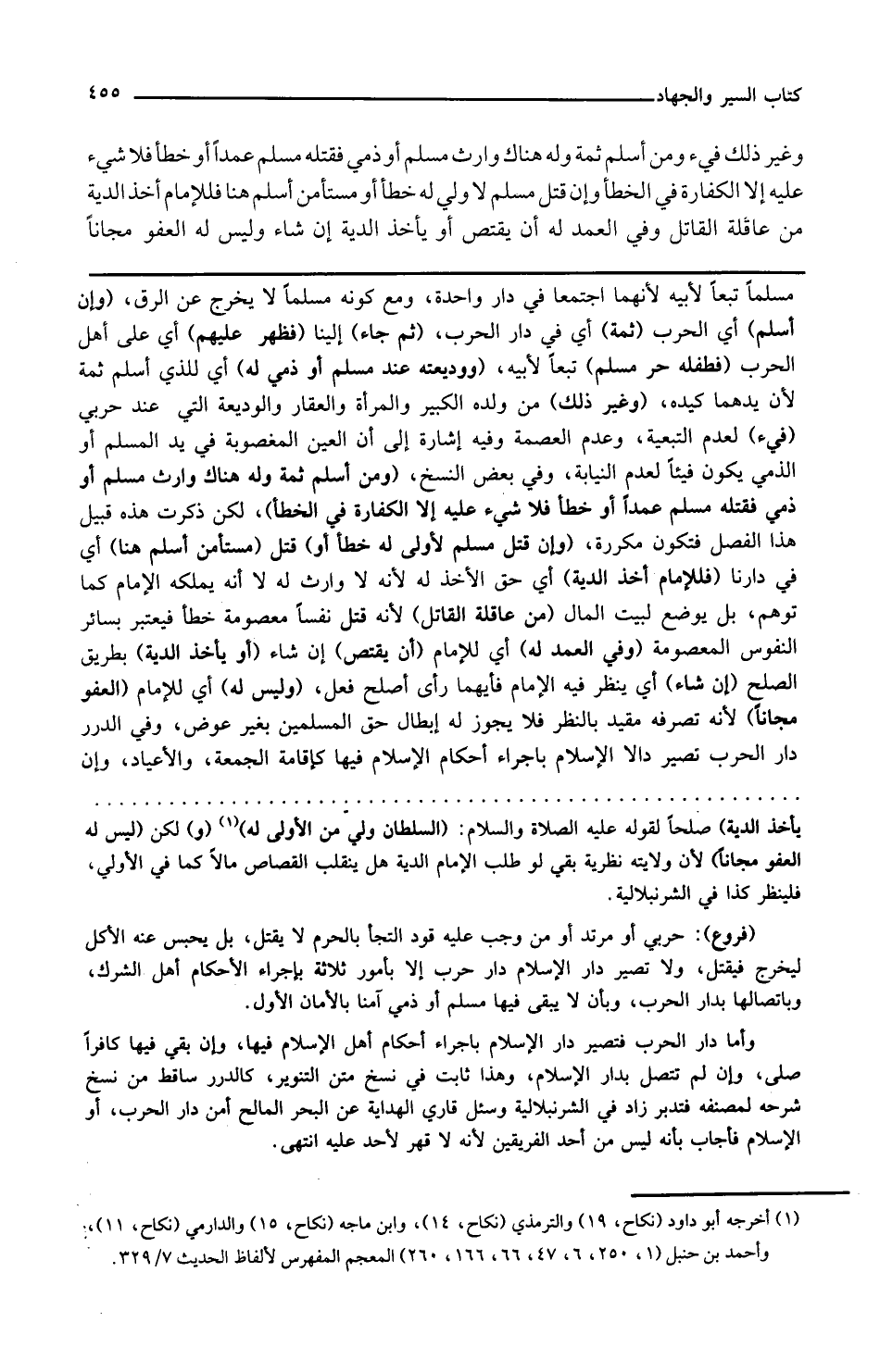 وفي بعض النسخ ومن أسلم ثمة وله هناك وارث مسلم أو ذمي فقتله مسلم عمدا أو خطأ فلا شيء عليه إلا الكفارة في الخطأ لكن ذكرت هذه قبيل هذا الفصل فتكون مكررة