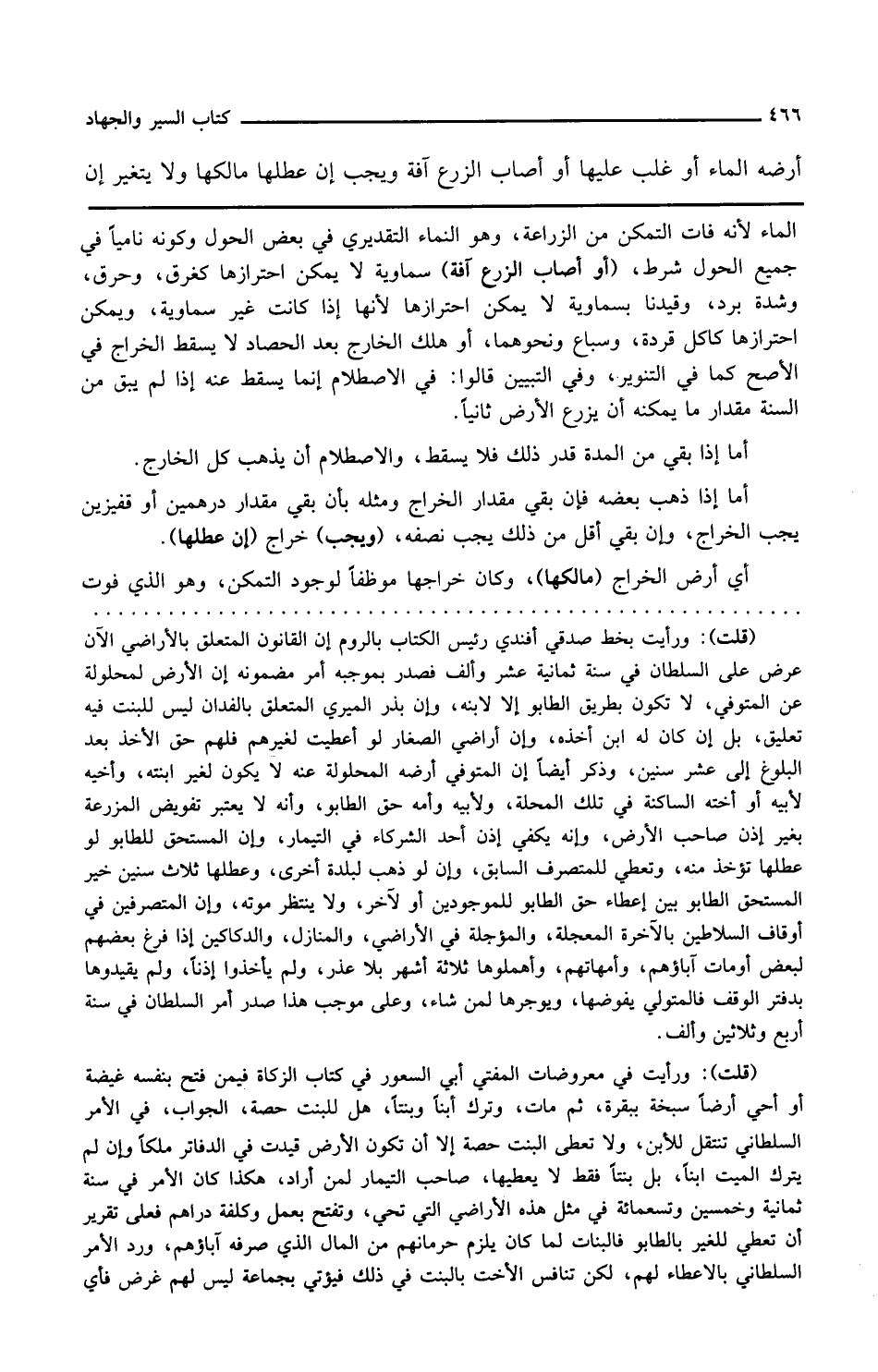 وفي التبيين قالوا في الاصطلام إنما يسقط عنه إذا لم يبق من السنة مقدار ما يمكنه أن يزرع الأرض ثانيا أما إذا بقي من المدة قدر ذلك فلا يسقط والاصطلام أن يذهب كل الخارج أما إذا ذهب بعضه فإن بقي مقدار الخراج ومثله بأن بقي مقدار درهمين أو قفيزين يجب الخراج وإن بقي أقل من ذلك يجب نصفه ويجب خراج إن عطلها أي أرض الخراج مالكها وكان خراجها موظفا لوجود التمكن وهو الذي فوت