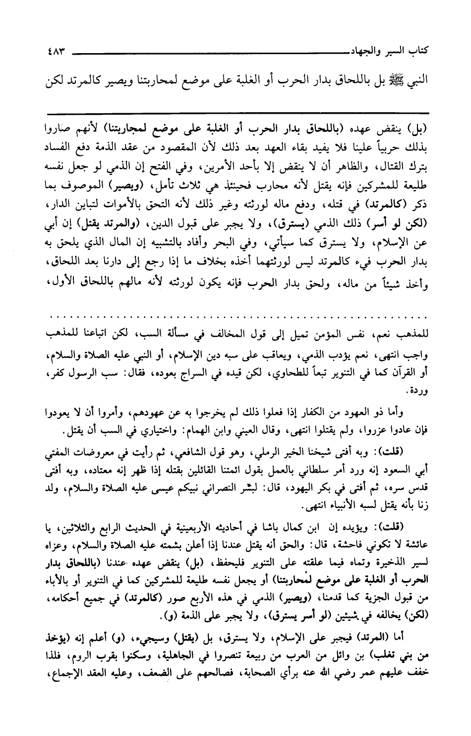 والمرتد يقتل إن أبى عن الإسلام ولا يسترق كما سيأتي