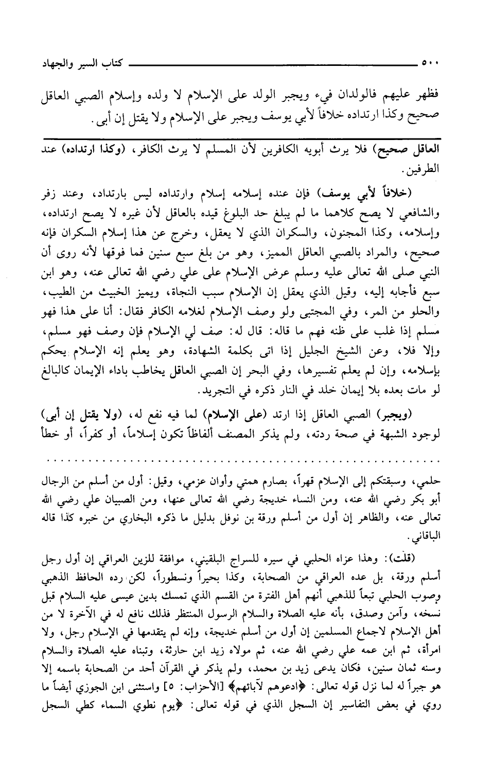 وكذا ارتداده عند الطرفين خلافا لأبي يوسف فإن عنده إسلامه إسلام وارتداده ليس بارتداد وعند زفر والشافعي لا يصح كلاهما ما لم يبلغ حد البلوغ قيده بالعاقل لأن غيره لا يصح ارتداده وإسلامه وكذا المجنون والسكران الذي لا يعقل وخرج عن هذا إسلام السكران فإنه صحيح والمراد بالصبي العاقل المميز وهو من بلغ سبع سنين فما فوقها لأنه روي أن النبي صلى الله تعالى عليه وسلم عرض الإسلام على علي رضي الله تعالى عنه وهو ابن سبع فأجابه إليه وقيل الذي يعقل أن الإسلام سبب النجاة ويميز الخبيث من الطيب والحلو من المر