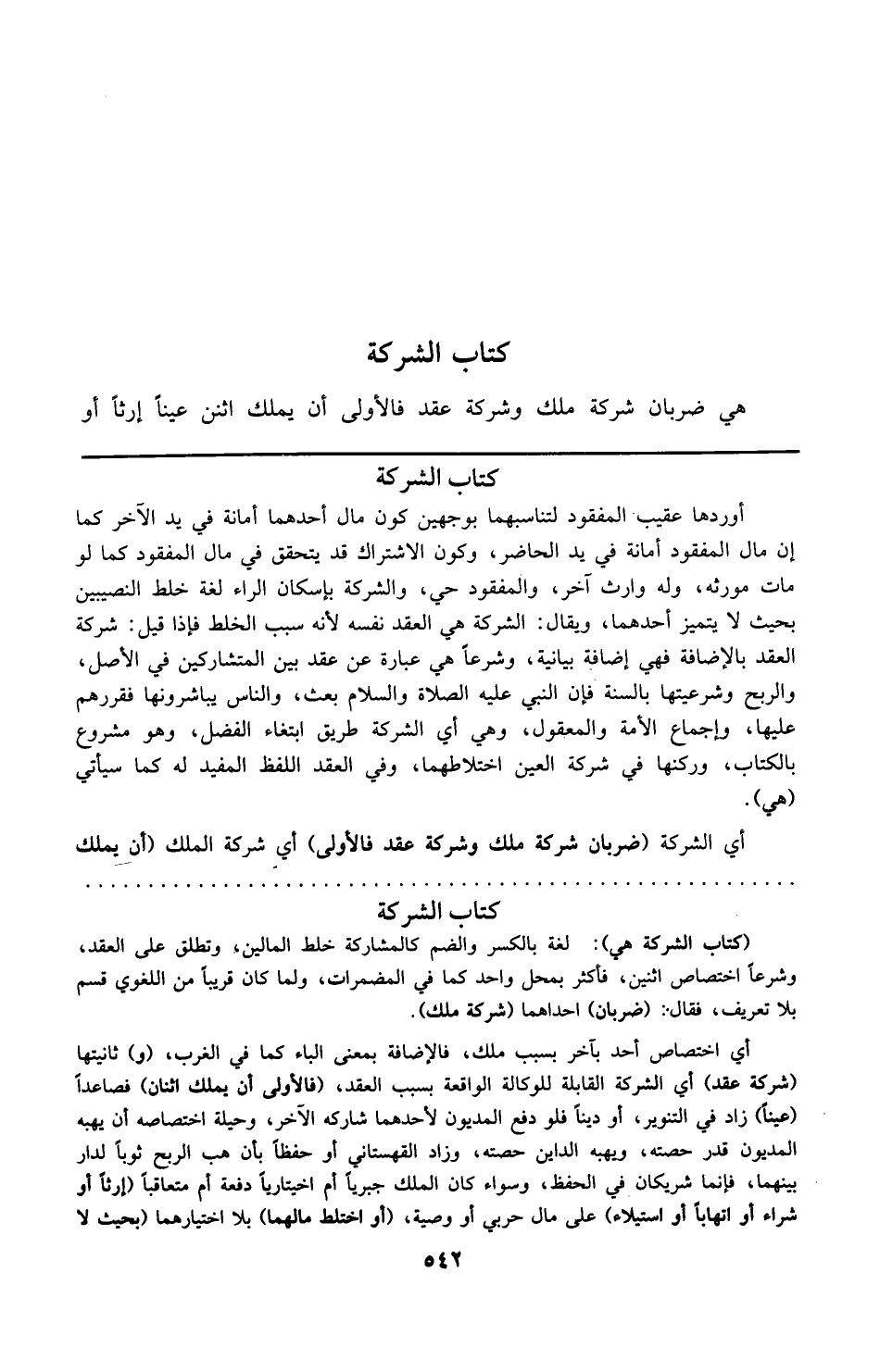 هي أي الشركة ضربان شركة ملك وشركة عقد فالأولى أي شركة الملك أن يملك