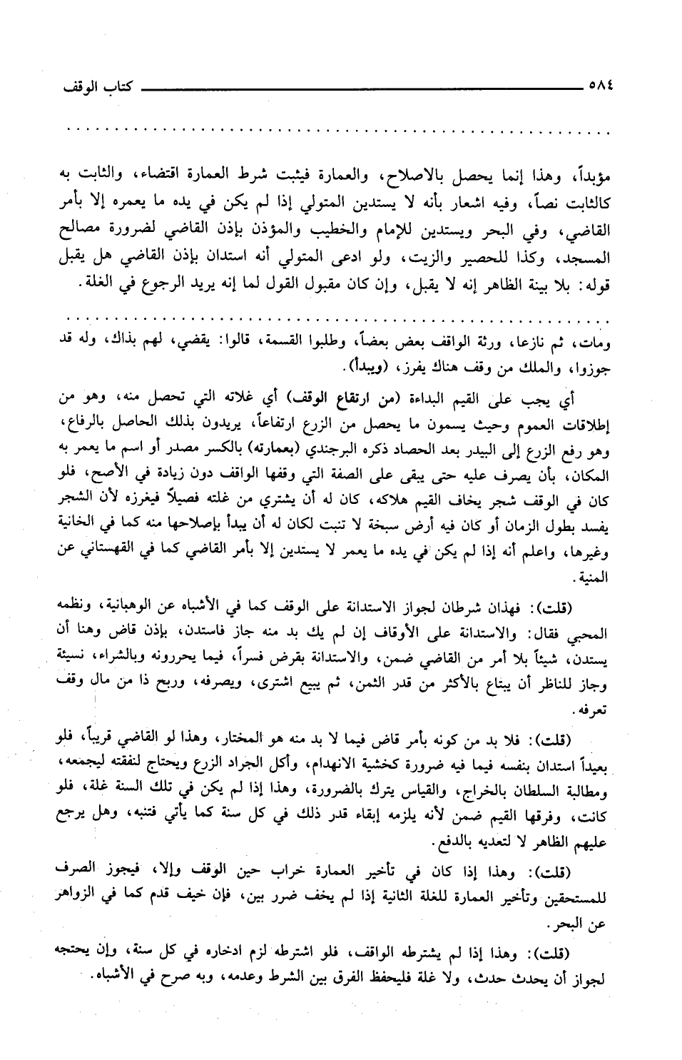 مؤبدا وهذا إنما يحصل بالإصلاح والعمارة فيثبت شرط العمارة اقتضاء والثابت به كالثابت نصا وفيه إشعار بأنه لا يستدين المتولي إذا لم يكن في يده ما يعمره إلا بأمر القاضي