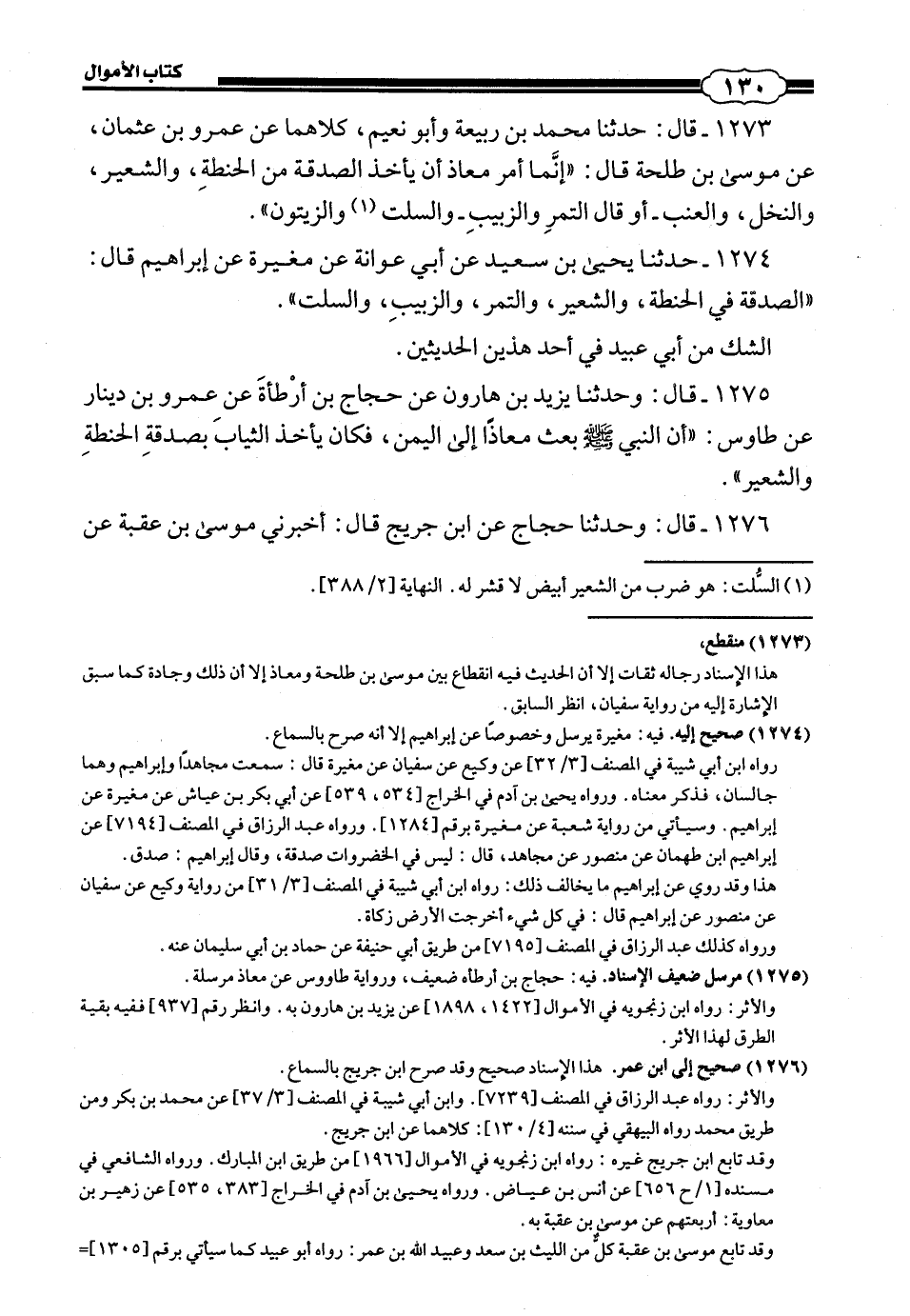 1274 - (1376) حَدَّثَنَا يَحْيَى بْنُ سَعِيدٍ، عَنْ أَبِي عَوَانَةَ، عَنْ مُغِيرَةَ، عَنْ إِبْرَاهِيمَ، قَالَ: الصَّدَقَةُ فِي الْحِنْطَةِ، وَالشَّعِيرِ، وَالتَّمْرِ، وَالزَّبِيبِ، وَالسُّلْتِ الشَّكُّ مِنْ أَبِي عُبَيْدٍ فِي أَحَدِ هَذَيْنِ الْحَدِيثَيْنِ.