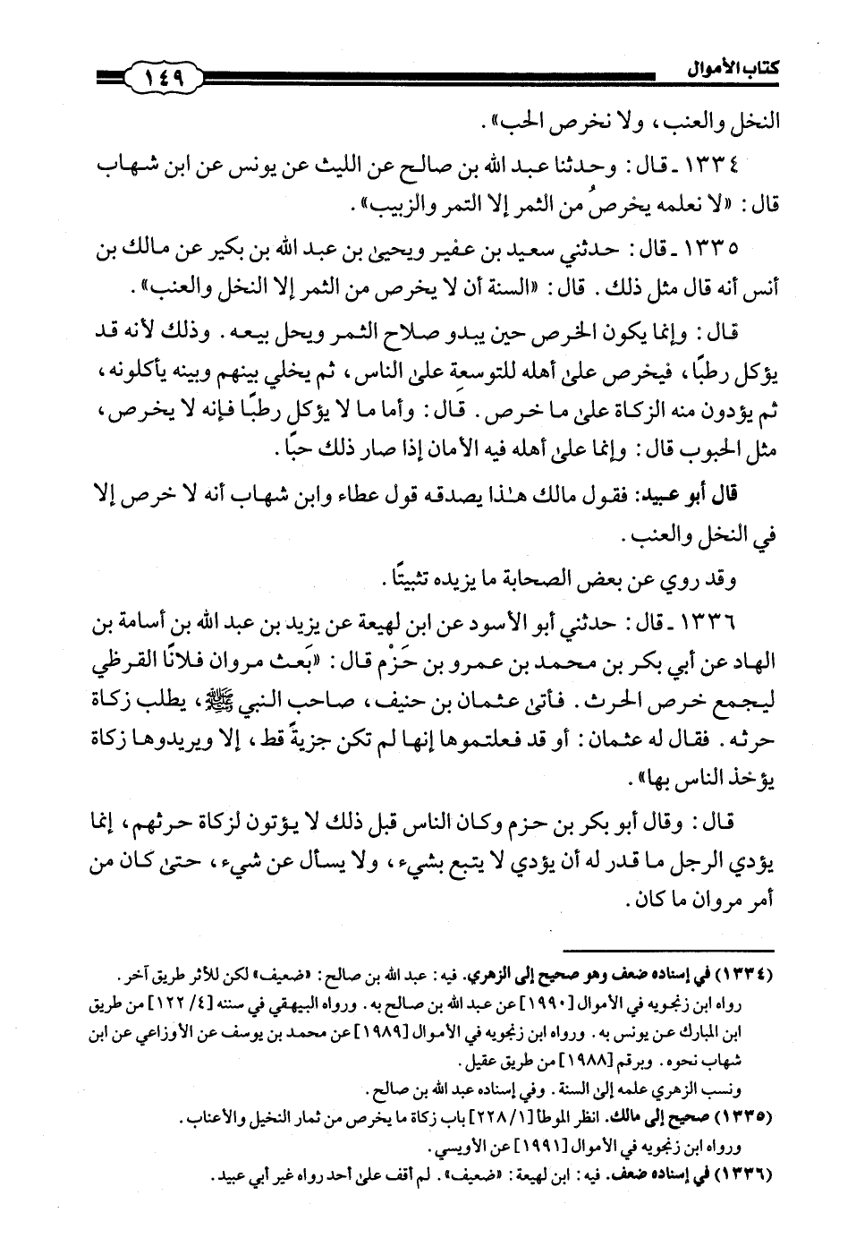 (1444) قَالَ أَبُو عُبَيْدٍ: فَقَوْلُ مَالِكٍ هَذَا يُصَدِّقُهُ قَوْلُ عَطَاءٍ، وَابْنُ شِهَابٍ أَنَّهُ لَا خَرْصَ إِلَّا فِي النَّخْلِ وَالْعِنَبِ. وَقَدْ رُوِيَ عَنْ بَعْضِ الصَّحَابَةِ مَا يَزِيدُهُ تَثْبِيتًا.