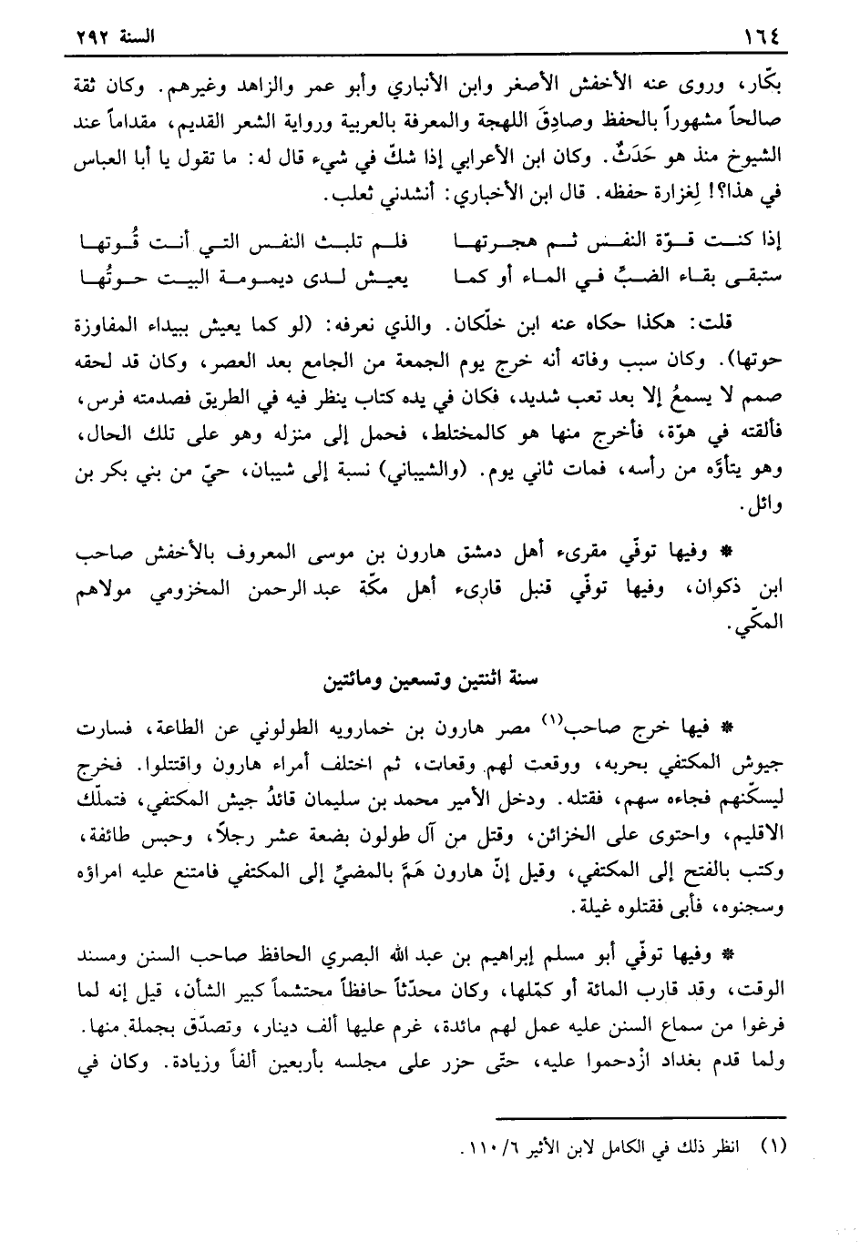 وفيها توفي مقرىء أهل دمشق هارون بن موسى المعروف بالأخفش صاحب ابن ذكوان، وفيها توفي قنبل قارىء أهل مكة عبد الرحمن المخزومي مولاهم المكي.