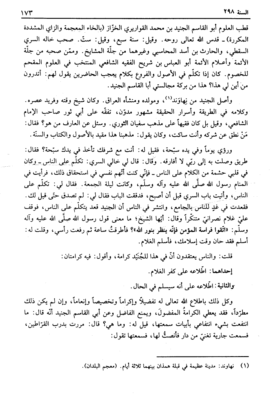 قلت: والناس يعتقدون أن في هذا للجنيد كرامة، وأقول: فيه كرامتان: إحداهما: اطلاعه على كفر الغلام.