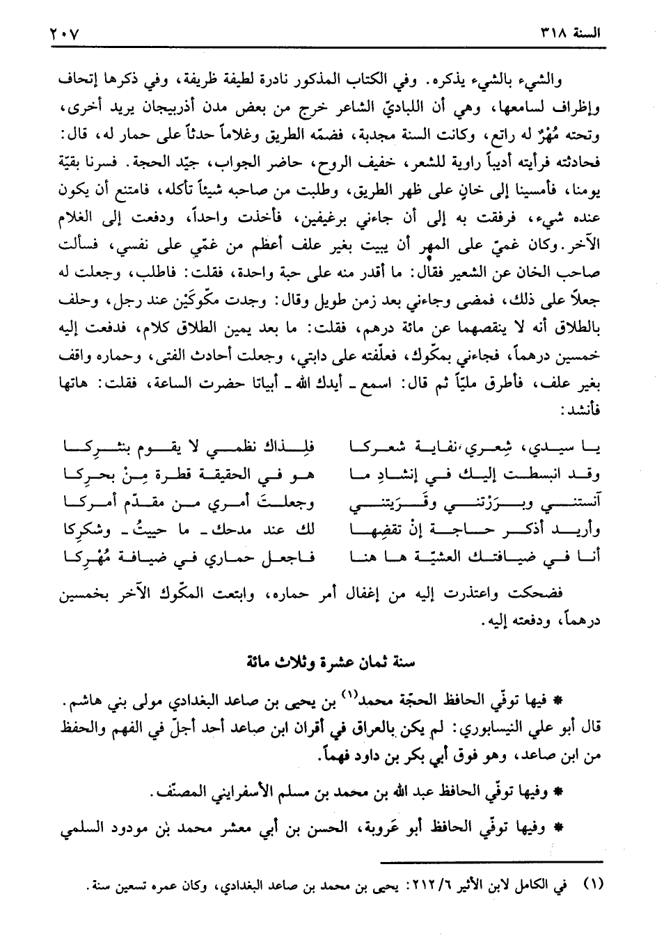 فيها توفي الحافظ الحجة محمد بن يحيى بن صاعد البغدادي مولى بني هاشم.