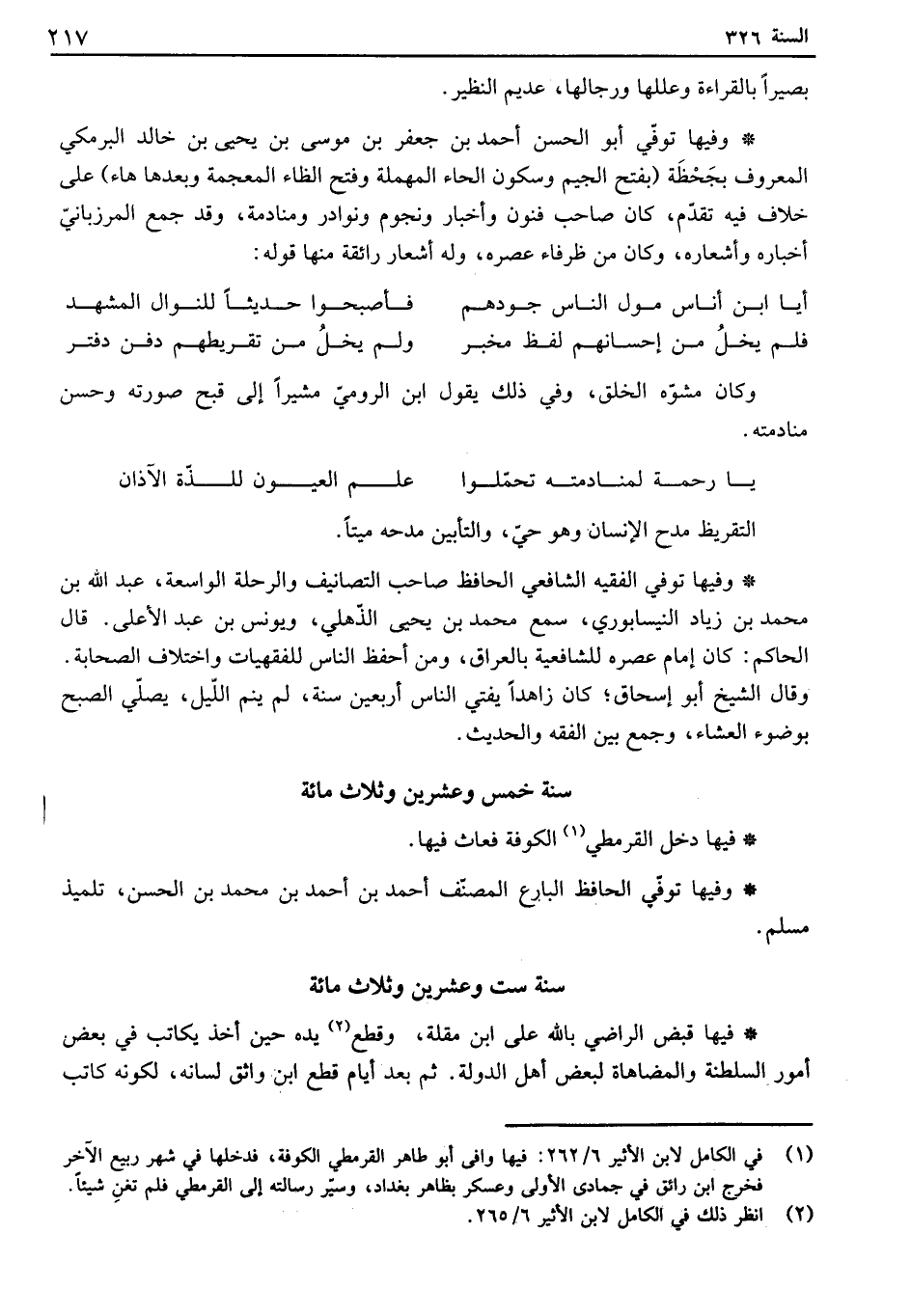 وفيها توفي أبو الحسن أحمد بن جعفر بن موسى بن يحيى بن خالد البرمكي المعروف بجحظة " بفتح الجيم وسكون الحاء المهملة وفتح الظاء المعجمة وبعدها هاء " على خلاف فيه تقدم، كان صاحب فنون وأخبار ونجوم ونوادر ومنادمة، وقد جمع المرزباني أخباره وأشعاره، وكان من ظرفاء عصره، وله أشعار رائقة منها قوله: