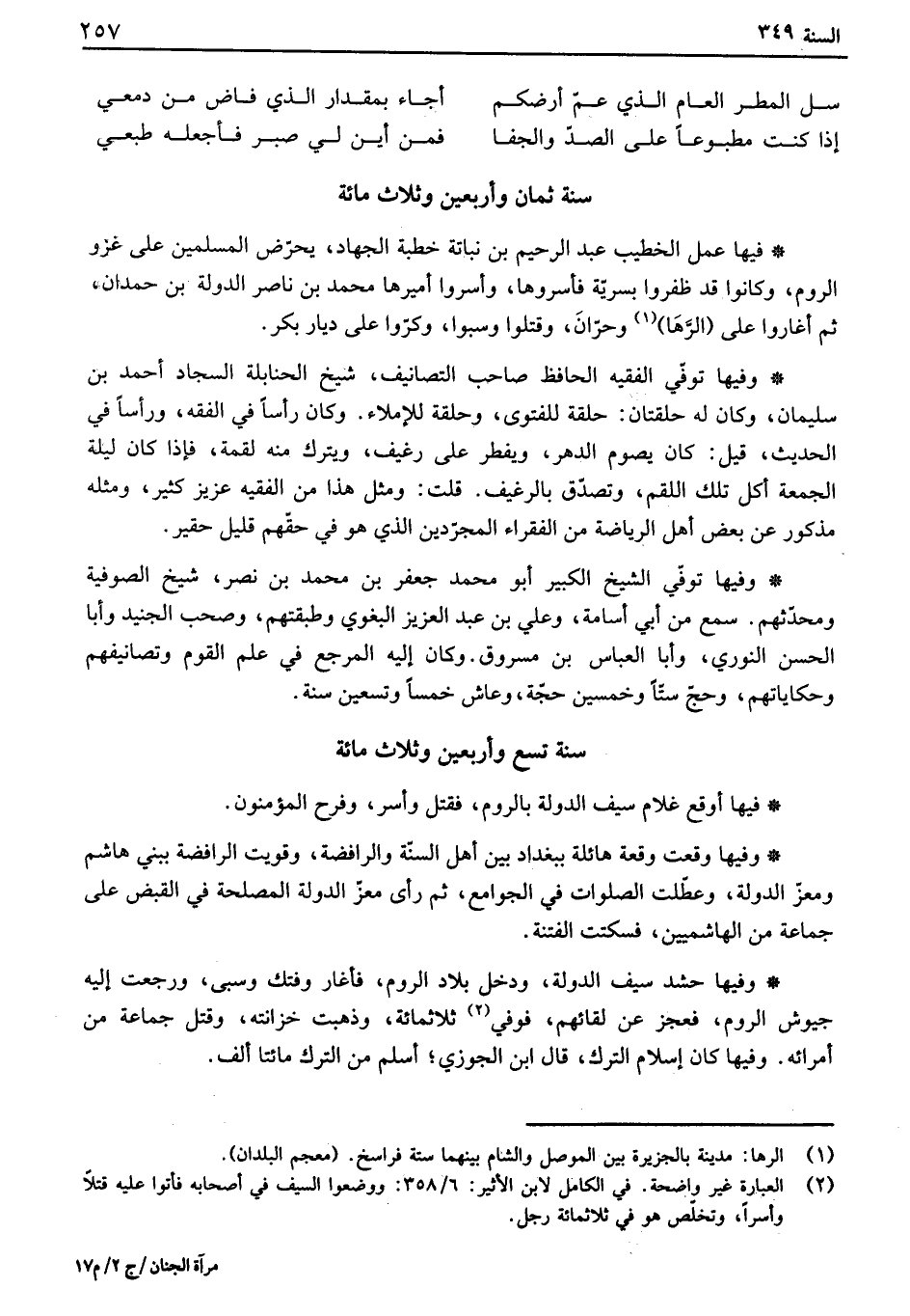 فيها أوقع غلام سيف الدولة بالروم، فقتل وأسر، وفرح المؤمنون.