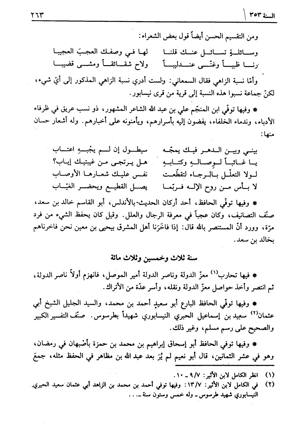 وفيها توفي الحافظ البارع أبو سعيد أحمد بن محمد، والسيد الجليل الشيخ أبي عثمان سعيد بن إسماعيل الحبري النيسابوري شهيداً بطرسوس. صنف التفسير الكبير والصحيح على رسم مسلم، وغير ذلك.