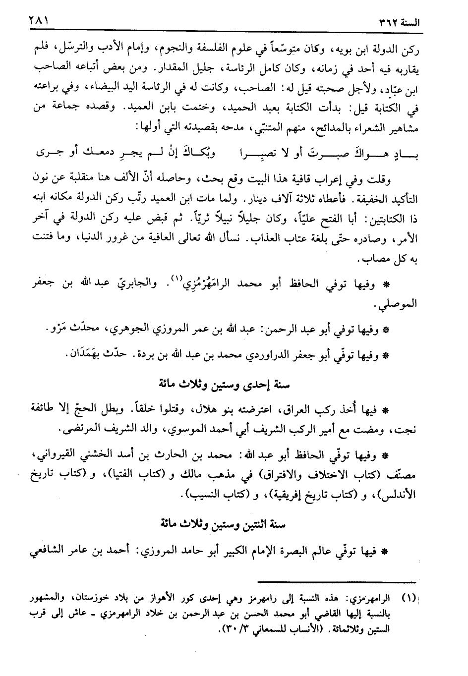 وفيها توفي الحافظ أبو محمد الرامهرمزي والجابري عبد الله بن جعفر الموصلي.