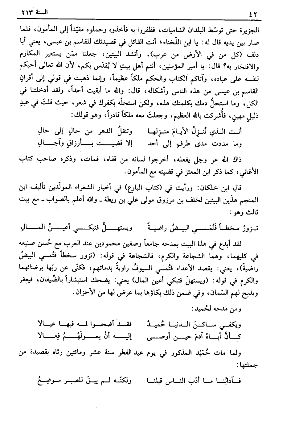 ولما مات حميد المذكور في يوم عيد الفطر سنة عشر ومائتين رثاه بقصيدة من جملتها: