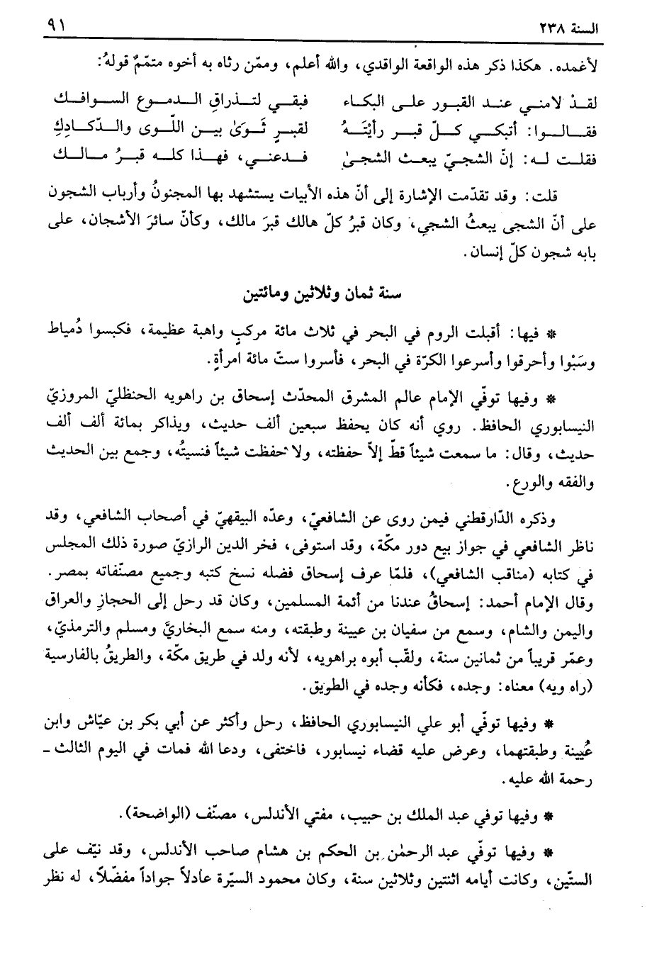 وفيها توفي عبد الملك بن حبيب، مفتي الأندلس، مصنف " الواضحة ".