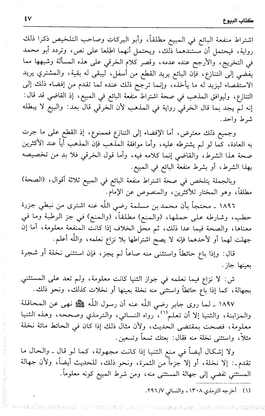 وبالجملة يتلخص في صحة اشتراط منفعة البائع في المبيع ثلاثة أقوال ، ( الصحة ) مطلقاً ، وهو المختار للأكثرين ، والمنصوص عن الإمام .