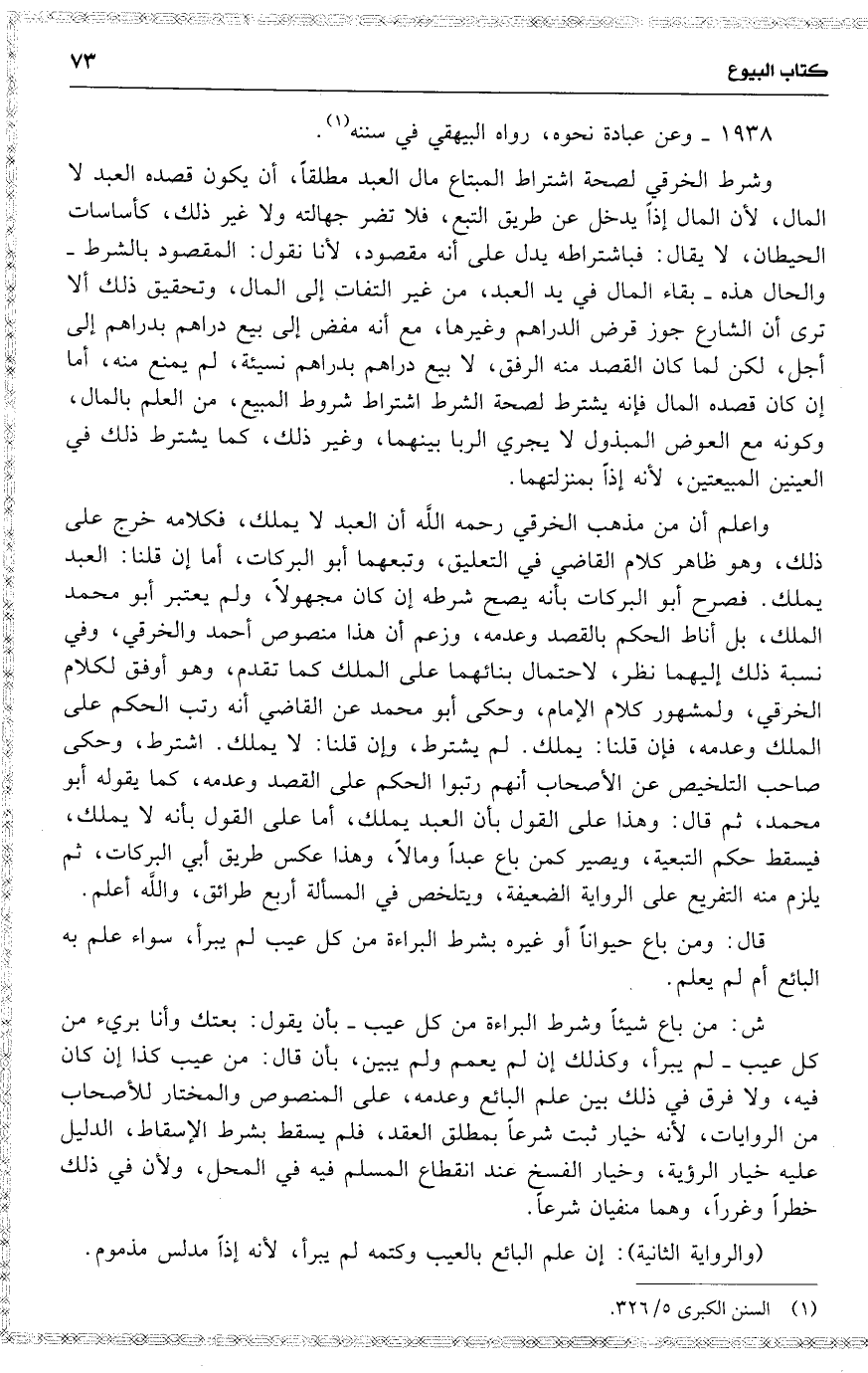 وشرط الخرقي لصحة اشتراط المبتاع مال العبد مطلقاً ، أن يكون قصده العبد لا المال ، لأن المال إذاً يدخل عن طريق التبع ، فلا تضر جهالته ولا غير ذلك ، كأساسات الحيطان ، لا يقال : فباشتراطه يدل على أنه مقصود ، لأنا نقول : المقصود بالشرط والحال هذه بقاء المال في يد العبد ، من غير التفات إلى المال ، وتحقيق ذلك ألا ترى أن الشارع جوز قرض الدراهم وغيرها ، مع أنه مفض إلى بيع دراهم بدراهم إلى أجل ، لكن لما كان القصد منه الرفق ، لا بيع دراهم بدراهم نسيئة ، لم يمنع منه ، أما إن كان قصده المال فإنه يشترط لصحة الشرط اشتراط شروط المبيع ، من العلم بالمال ، وكونه مع العوض المبذول لا يجري الربا بينهما ، وغير ذلك ، كما يشترط ذلك في العينين المبعتين ، لأنه إذاً بمنزلتهما .
