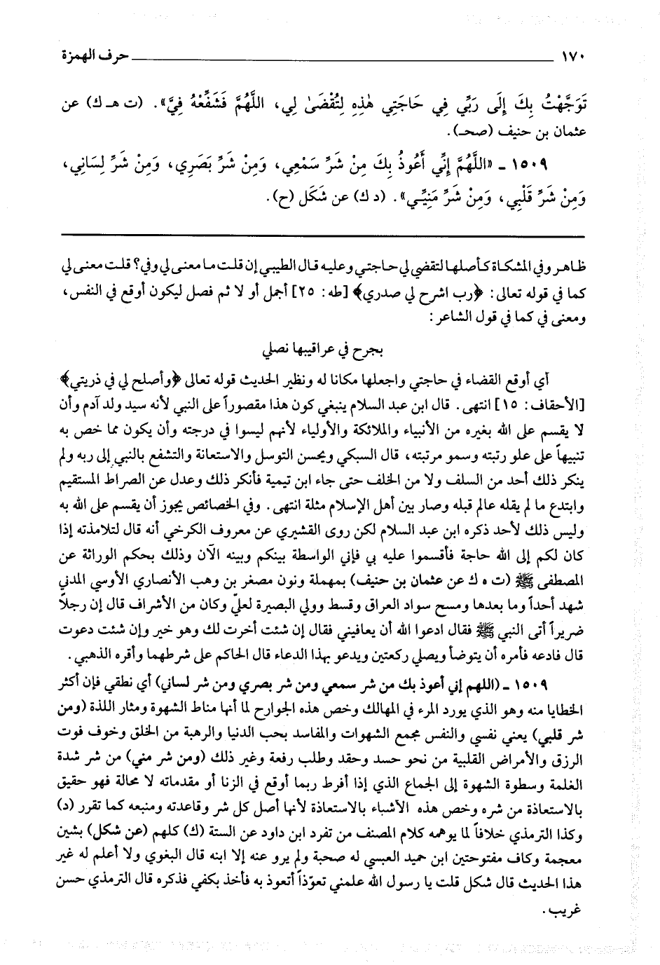 وفي الخصائص يجوز أن يقسم على الله به وليس ذلك لأحد ذكره ابن عبد السلام لكن روى القشيري عن معروف الكرخي أنه قال لتلامذته إذا كان لكم إلى الله حاجة فأقسموا عليه بي فإني الواسطة بينكم وبينه الآن وذلك بحكم الوراثة عن المصطفى صلى الله عليه وسلم (ت ه ك عن عثمان بن حنيف) بمهملة ونون مصغر بن وهب الأنصاري الأوسي المدني شهد أحدا وما بعدها ومسح سواد العراق وقسط وولى البصرة لعلي وكان من الأشراف قال : إن رجلا ضريرا أتى النبي صلى الله عليه وسلم فقال ادعوا الله أن يعافيني فقال إن شئت أخرت لك وهو خير وإن شئت دعوت قال فادعه فأمره أن يتوضأ ويصلي ركعتين ويدعوا بهذا الدعاء قال الحاكم على شرطهما وأقره الذهبي.