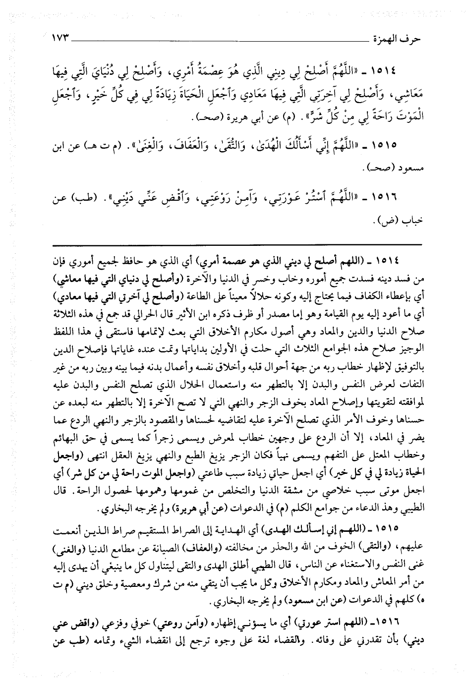 1515 - (اللهم إني أسألك الهدى) أي الهداية إلى الصراط المستقيم صراط الذين أنعمت