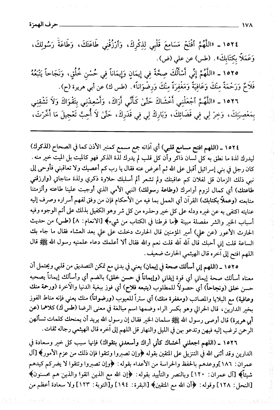 1524 - (اللهم افتح مسامع قلبي) أي آذانه جمع مسمع كمنبر الأذن كما في الصحاح (لذكرك) ليدرك لذة ما نطق به كل لسان ذاكر وأن كل قلب لم يدرك لذة الذكر فهو كالميت بل الميت خير منه.