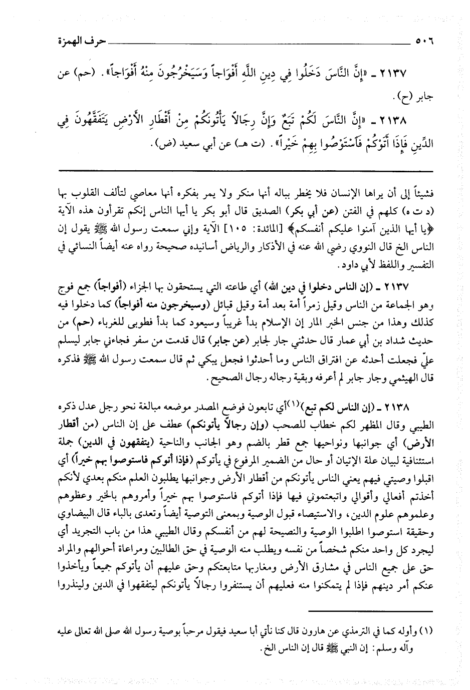 (1) وأوله كما في الترمذي عن هارون قال كما نأتي أبا سعيد فيقول مرحبا بوصية رسول الله صلى الله عليه وآله وسلم : إن النبي (ص) قال إن الناس الخ.