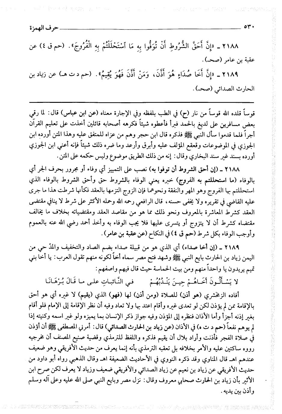 2189 - (إن أخا صداء) أي الذي هم من قبيلة صداء بضم الصاد والتخفيف والمد حي من اليمن زياد بن الحارث بايع النبي صلى الله عليه وسلم فتح مصر سماه أخا لكونه منهم تقول العرب يا أخا بني تميم يريدون يا واحدا منهم ومن بيت الحماسة حيث قال فيهم واصفهم : لا يسألون أخاهم حين يندبهم * * في النائبات على ما قال برهانا أفاده الزمخشري (هو أذن) للصلاة (ومن أذن) لها (فهو) الذي (يقيم) لا غيره أي هو أحق بالإقامة ممن لم يؤذن لكن لو تعدى غيره وأقام اعتد بها ولا تعاد وفيه أن نظر الإقامة إلى الإمام فلو أقام بغير إذنه أجزأ وأما الأذان فنظره إلى المؤذن وفيه جواز ذكر الإنسان بما يميزه ولو غير اسمه وكنيته إذا لم يوهم نفعا (حم د ت ه) في الأذان (عن زياد بن الحارث الصدائي) قال : أمرني المصطفى صلى الله عليه وسلم أن أؤذن في صلاة الفجر فأذنت وأراد بلال أن يقيم فذكره واللفظ للترمذي وقضية صنيع المصنف أن مخرجيه رووه ساكتين عليه والأمر بخلافه بل تعقبه الترمذي بأنه إنما يعرف من حديث الأفريقي وهو ضعيف عندهم اه قال المناوي وقد ذكره النووي في الأحاديث الضعيفة اه وقال الذهبي رواه أبو داود من حديث الأفريقي عن زياد بن نعيم الصدائي والأفريقي ضعيف وزياد لا يعرف لكن صرح ابن الأثير بأن زياد بن الحارث صحابي معروف وقال نزل مصر وبايع النبي صلى الله عليه وعلى آله وسلم وأذن بين يديه.