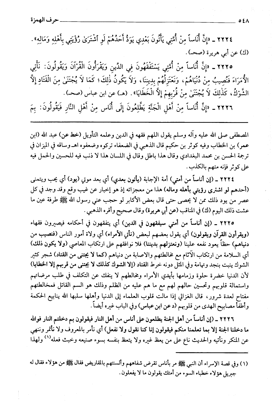 2226 - (إن أناسا من أهل الجنة يطلعون على أناس من أهل النار فيقولون بم دخلتم النار فوالله ما دخلنا الجنة إلا بما تعلمنا منكم فيقولون إنا كنا نقول ولا نفعل) أي نأمر بالمعروف ولا نأتمر وننهى عن المنكر ونأتيه والحديث ناع على من يعظ غيره ولا يتعظ بنفسه بسوء صنيعه وخبث فعله (1) ولهذا