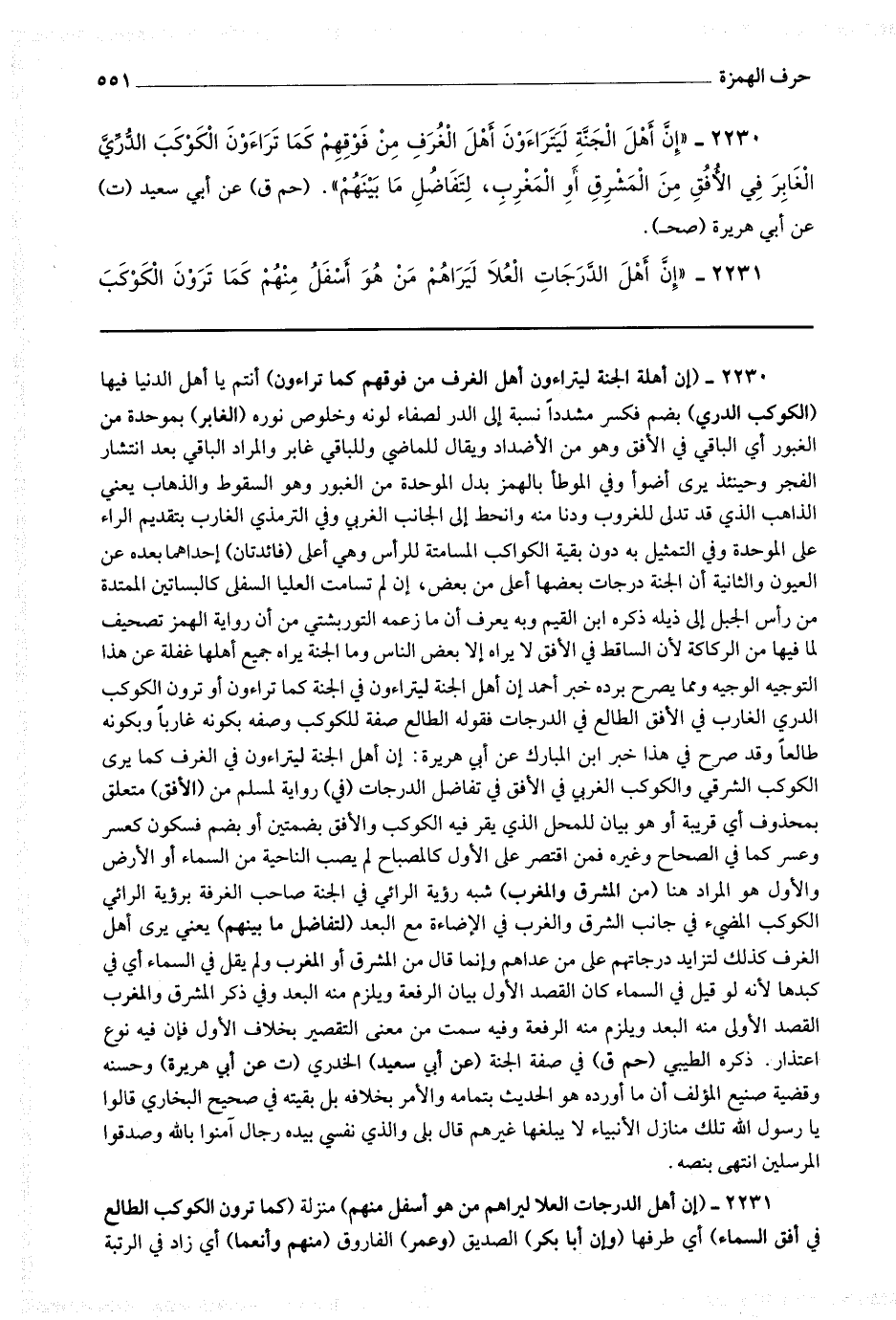 2231 - (إن أهل الدرجات العلا ليراهم من هو أسفل منهم) منزلة (كما ترون الكوكب الطالع في أفق السماء) أي طرفها (وإن أبا بكر) الصديق (وعمر) الفاروق (منهم وأنعما) أي زادا في الرتبة