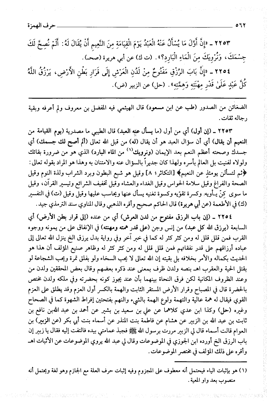 الحديث بكماله والأمر بخلافه بل بقيته إن الله تعالى لا يحب السخاء ولو بفلق تمرة ويحب الشجاعة ولو بقتل الحية والعقرب اه بنصه ولدن ظرف بمعنى عند ذكره بعضهم وقال بعض المحققين ولدن من وعند الظروف المكانية لكن فرق النجاة بينهما بأن عند يجوز كونه بحضرته وفي ملكه ولدن مختص بالحضرة قال في المصباح وقرار الأرض المستقر الثابت والهمة بالكسر أول العزم وقد يطلق على العزم القوي فيقال له همة عالية والنهمة ولوع الهمة بالشئ والنهم بفتحتين إفراط الشهوة كما في الصحاح وغيره (حل) وكذا ابن عدي كلاهما عن علي بن سعيد بن بشير عن أحمد بن عبد الله بن نافع بن ثابت بن عبد الله بن الزبير عن هشام عن فاطمة بنت المنذر عن أسماء بنت أبي بكر (عن الزبير) بن العوام قالت أسماء قال لي الزبير مررت برسول الله صلى الله عليه وسلم فجبذ عمامتي بيده فالتفت إليه فقال يا زبير إن باب الرزق إلخ أورده ابن الجوزي في الموضوعات وقال لي عبد الله يروي الموضوعات عن الأثبات اه وأقره على ذلك المؤلف في مختصر الموضوعات.