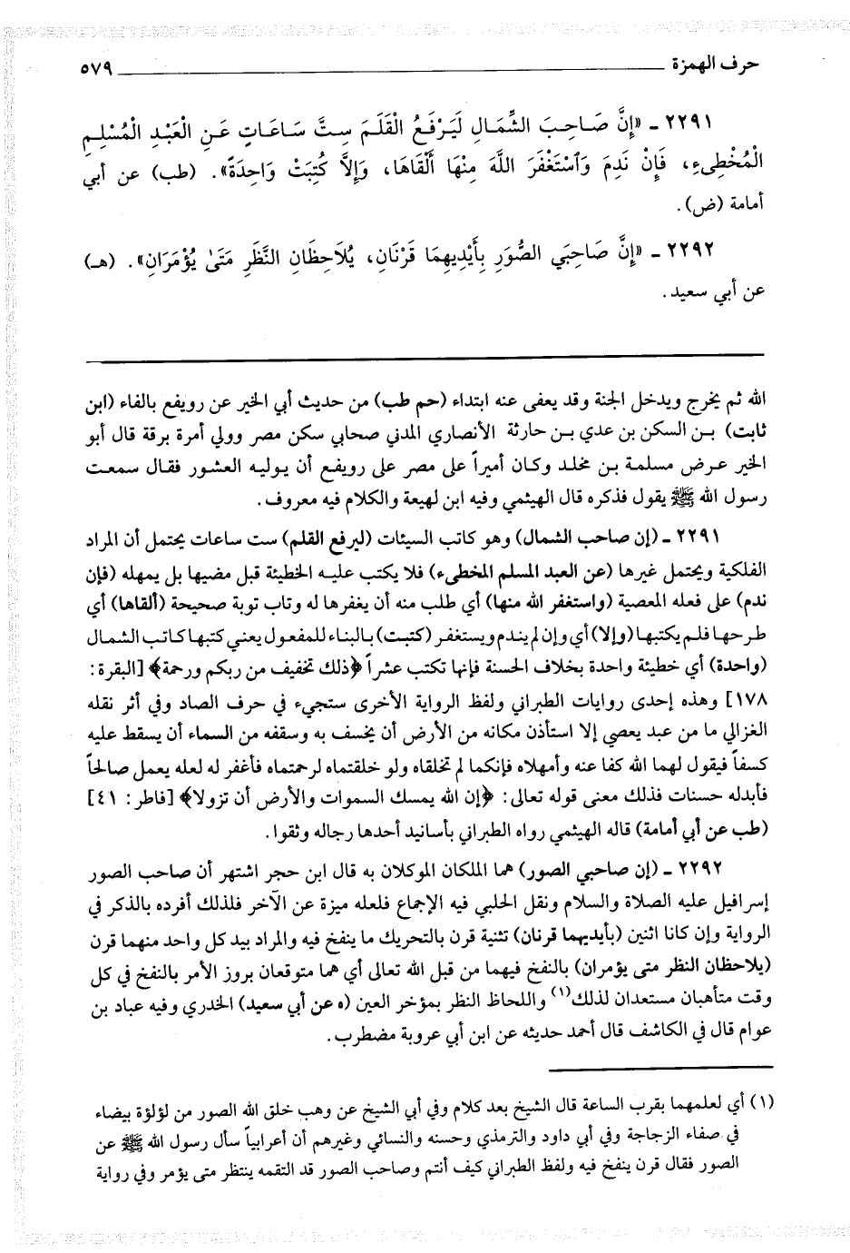 2292 - (إن صاحبي الصور) هما الملكان الموكلان به قال ابن حجر اشتهر أن صاحب الصور إسرافيل عليه الصلاة والسلام ونقل الحلبي فيه الإجماع فلعله ميز على الآخر فلذلك أفرد بالذكر في الرواية وإن كانا إثنين (بأيديهما قرنان) تثنية قرن بالتحريك ما ينفخ فيه والمراد بيد كل واحد منهما قرن (يلاحظان النظر متى يؤمران) بالنفخ فيهما من قبل الله تعالى أي هما متوقعان بروز الأمر بالنفخ في كل وقت متأهبان مستعدان لذلك (1) واللحاظ النظر بمؤخر العين (ه عن أبي سعيد) الخدري وفيه عباد بن عوام قال في الكاشف قال أحمد حديثه عن ابن أبي عروبة مضطرب.