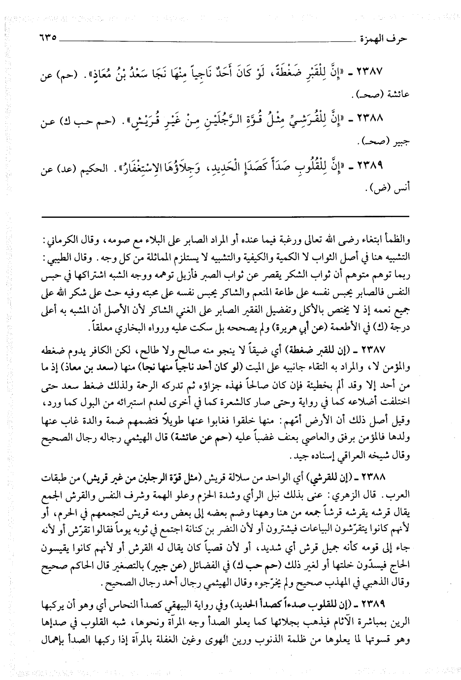 2389 - (إن للقلوب صدءا كصدأ الحديد) وفي رواية البيهقي كصدأ النحاس أي وهو أن يركبها الرين بمباشرة الآثام فيذهب بجلائها كما يعلوا الصدأ وجه المرآة ونحوها ، شبه القلوب في صدأها وهو قسوتها لما يعلوها من ظلمة الذنوب ورين الهوى وغين الغفلة بالمرآة إذا ركبها الصدأ بإهمال