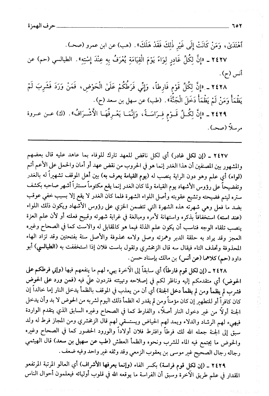 2429 - (إن لكل قوم فراسة) بكسر الفاء (وإنما يعرفها الأشرف) أي العالو المرتبة المرتفعو المقدار في علم طريق الآخرة وسبق أن الفراسة ما يوقعه الله في قلوب أوليائه فيعلمون أحوال الناس