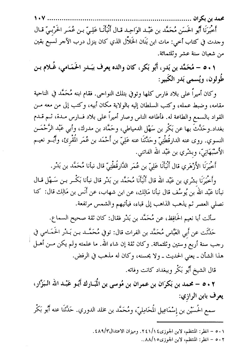 502- محمد بن بكران بن عمران بن موسى بن المبارك أبو عبد الله البزّار، يعرف بابن الرازي [2] :